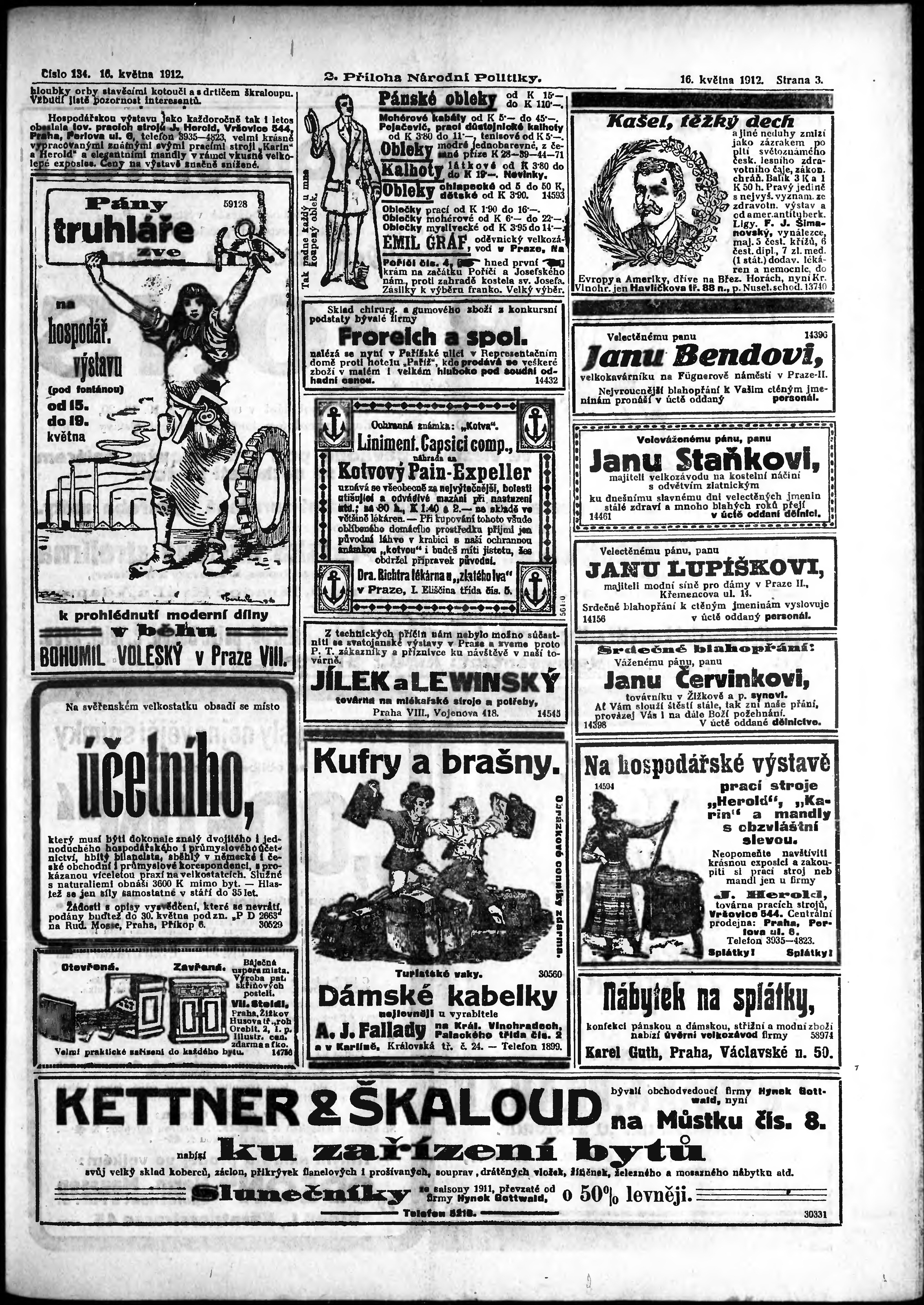 * Datum vydání výtisku: 16.5.1912 Číslo výtisku: 134 Typ výtisku: příloha Poznámky k výtisku: 2. příloha;