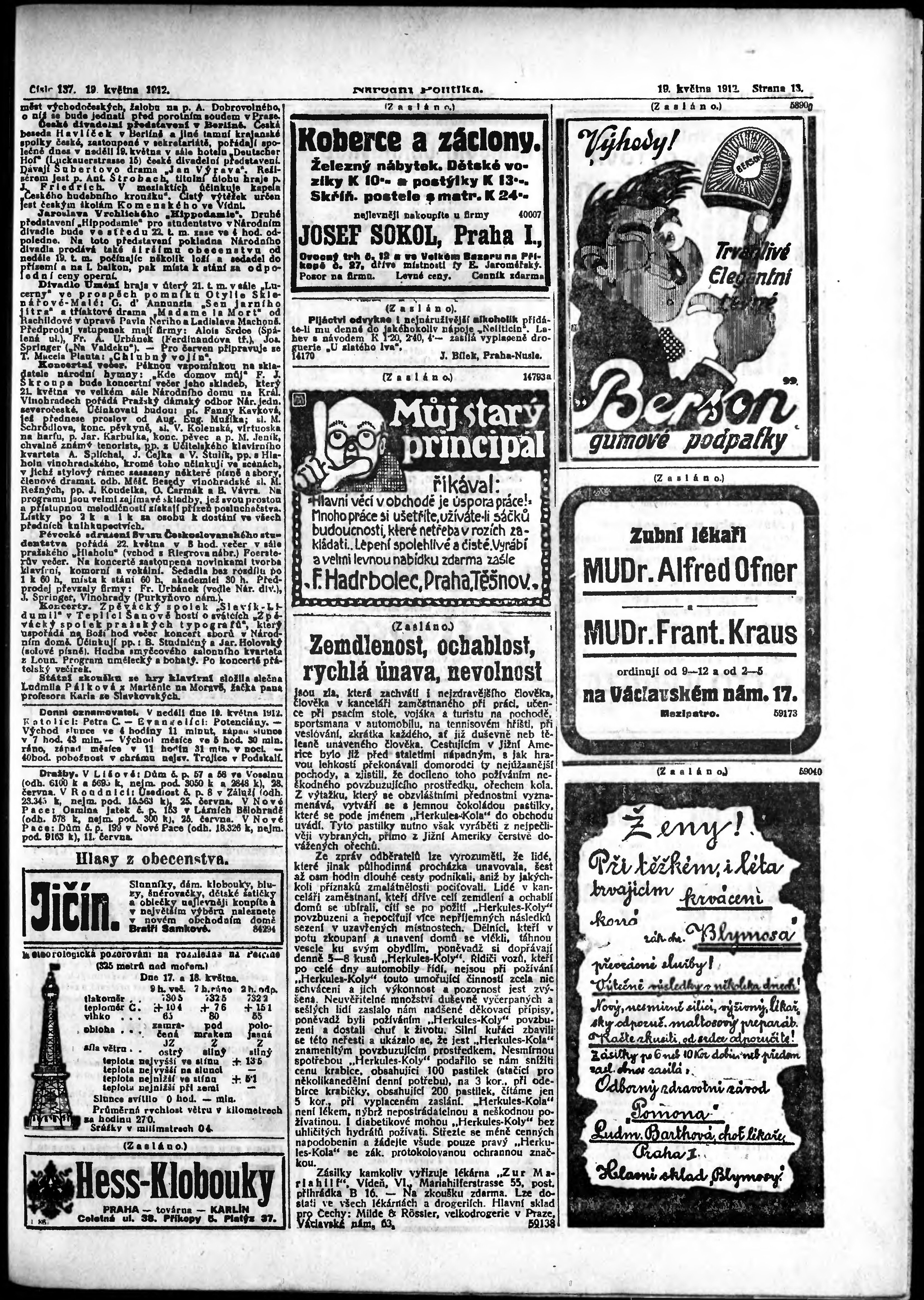 * Datum vydání výtisku: 19.5.1912 Číslo výtisku: 137 Poznámky k výtisku: ranní vydání;
