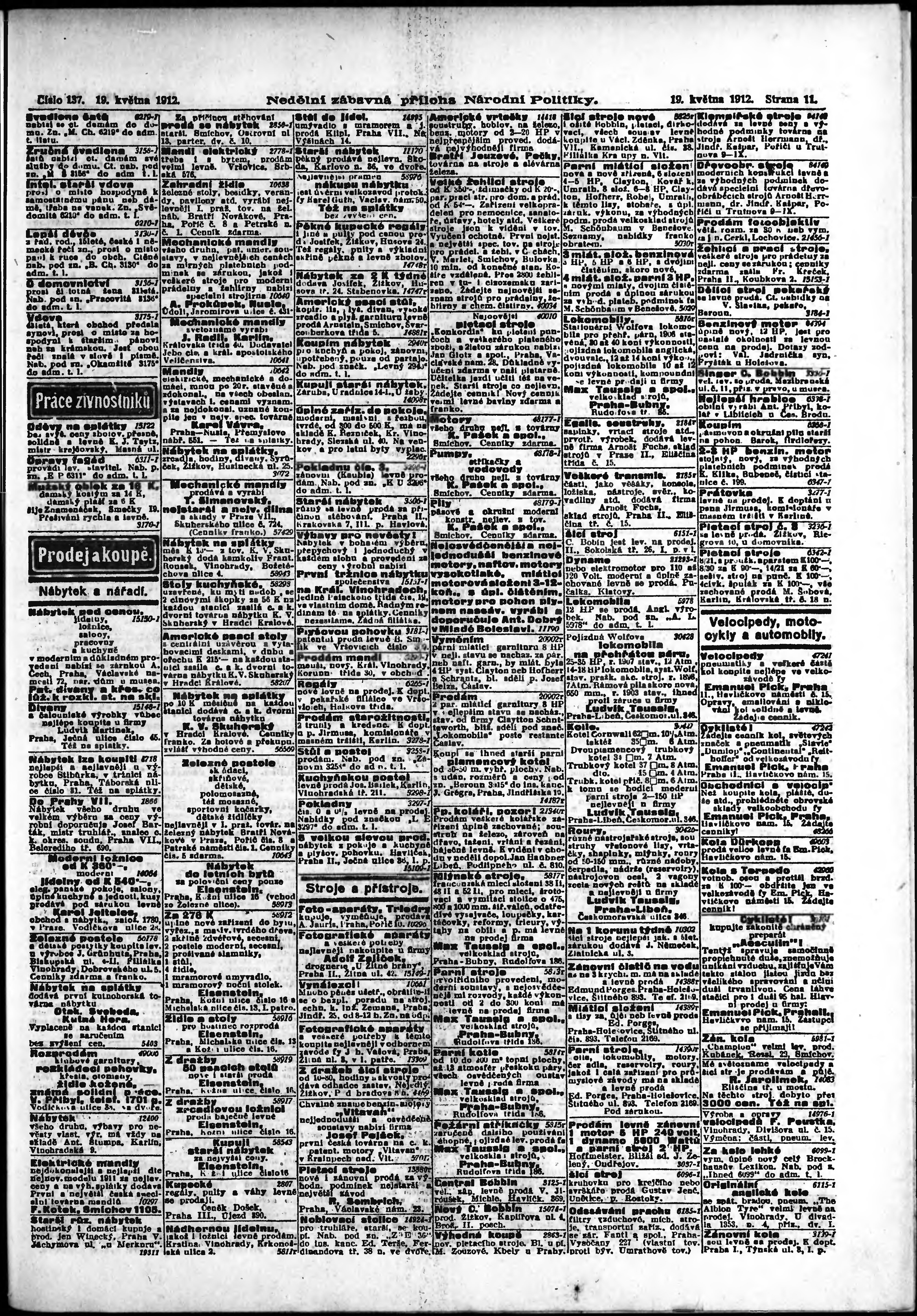 * Datum vydání výtisku: 19.5.1912 Číslo výtisku: 137 Typ výtisku: příloha
