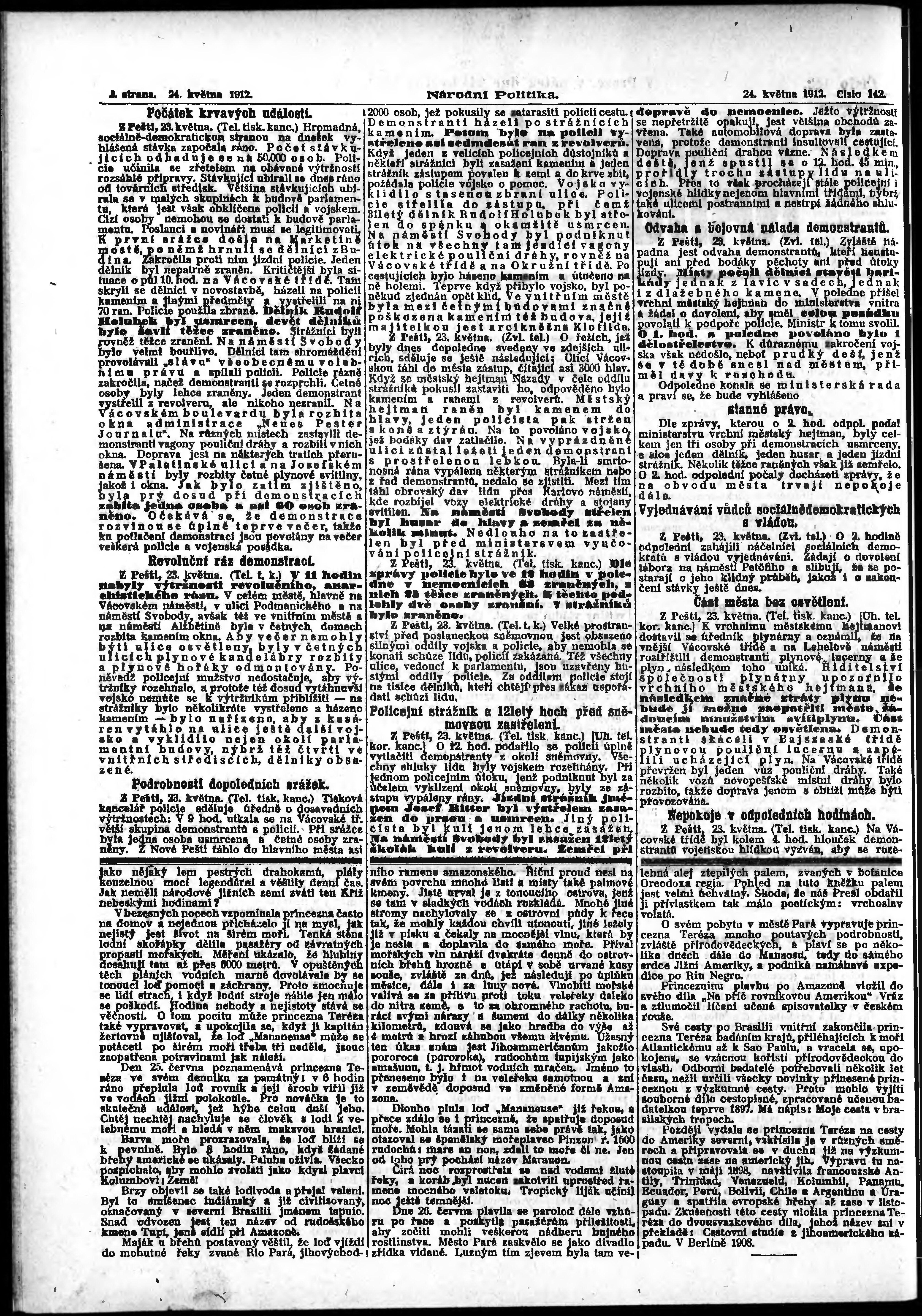 * Datum vydání výtisku: 24.5.1912 Číslo výtisku: 142 Poznámky k výtisku: ranní vydání;