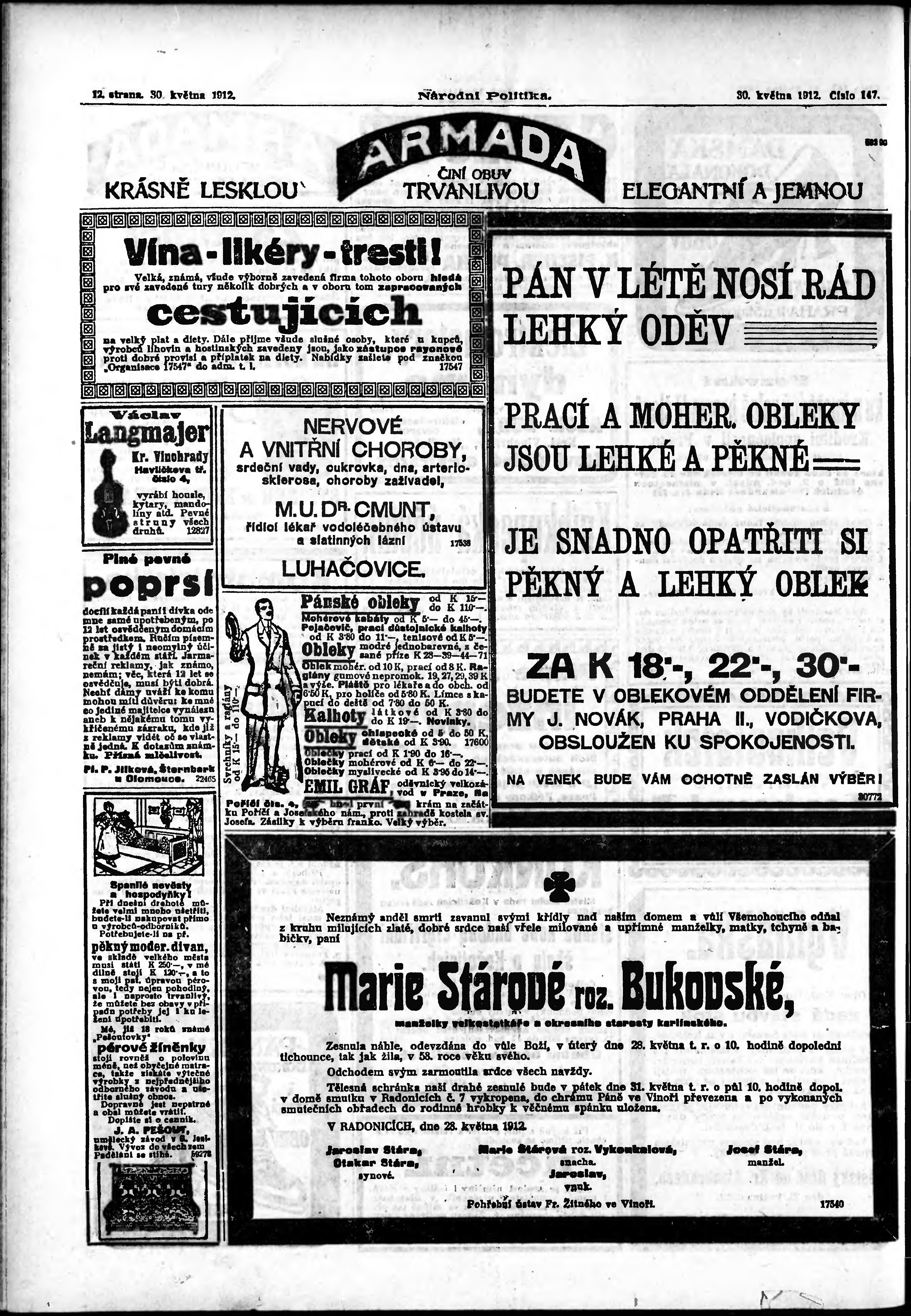 * Datum vydání výtisku: 30.5.1912 Číslo výtisku: 147 Poznámky k výtisku: ranní vydání;