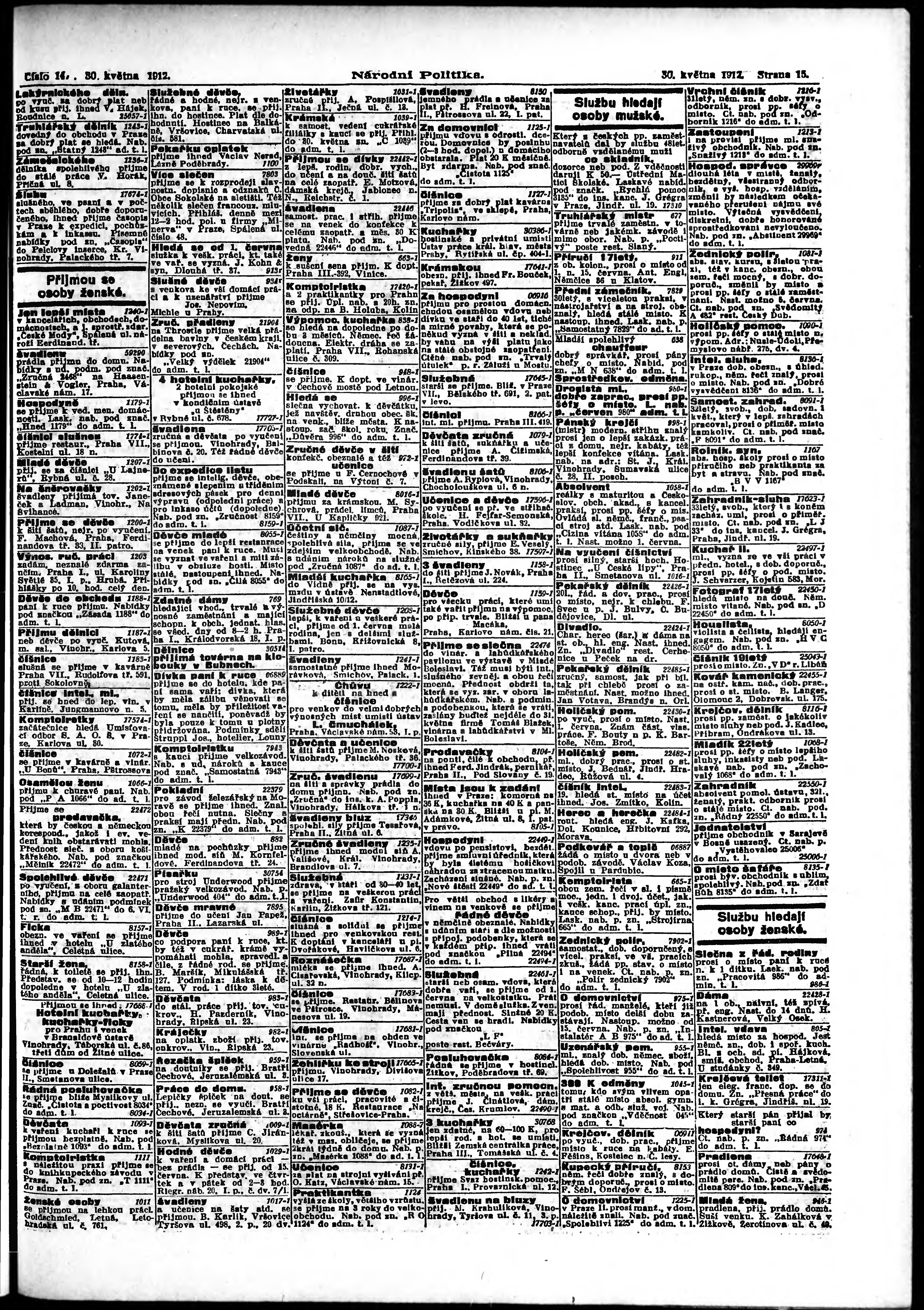 * Datum vydání výtisku: 30.5.1912 Číslo výtisku: 147 Poznámky k výtisku: ranní vydání;