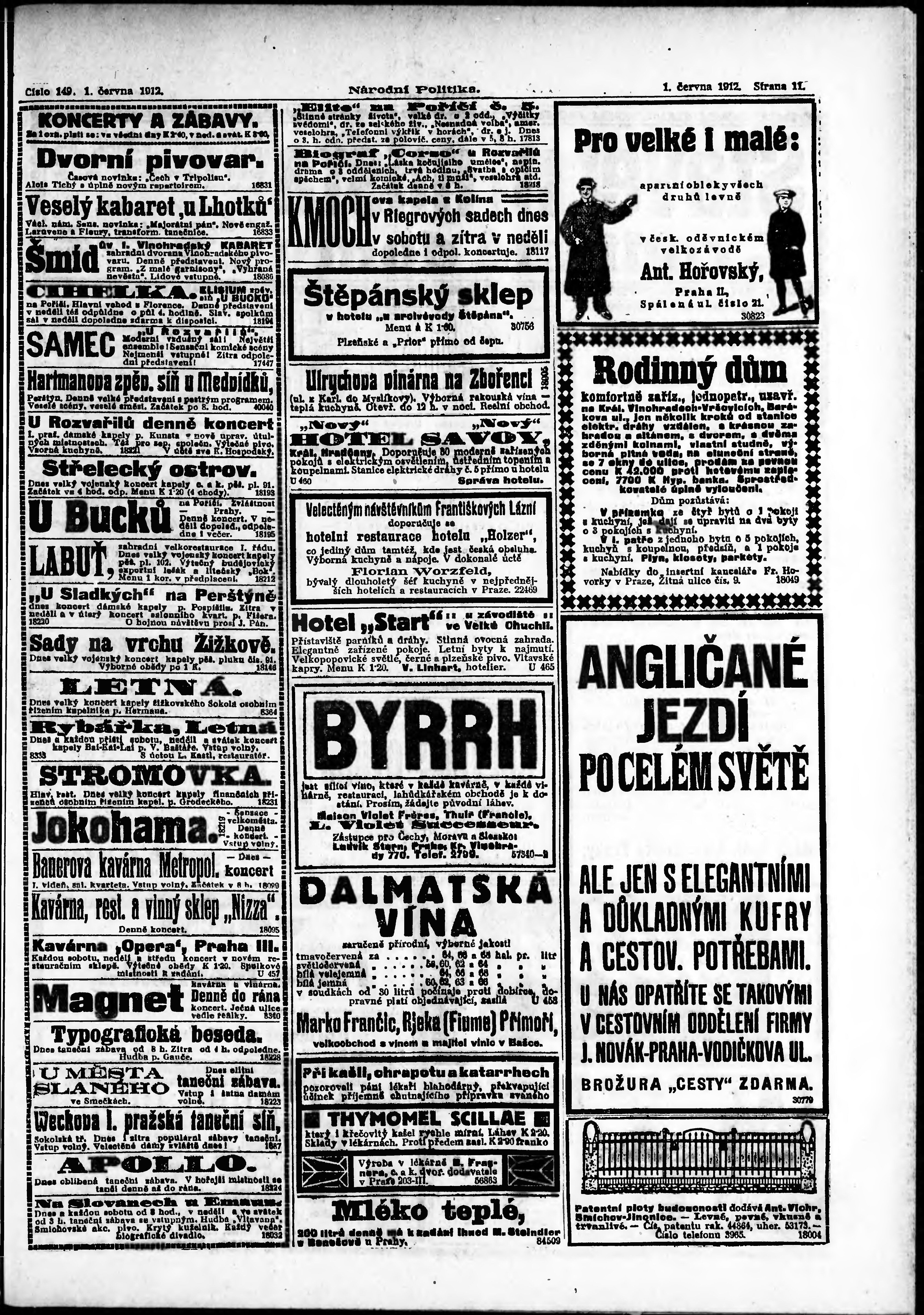 * Datum vydání výtisku: 1.6.1912 Číslo výtisku: 149 Poznámky k výtisku: ranní vydání;