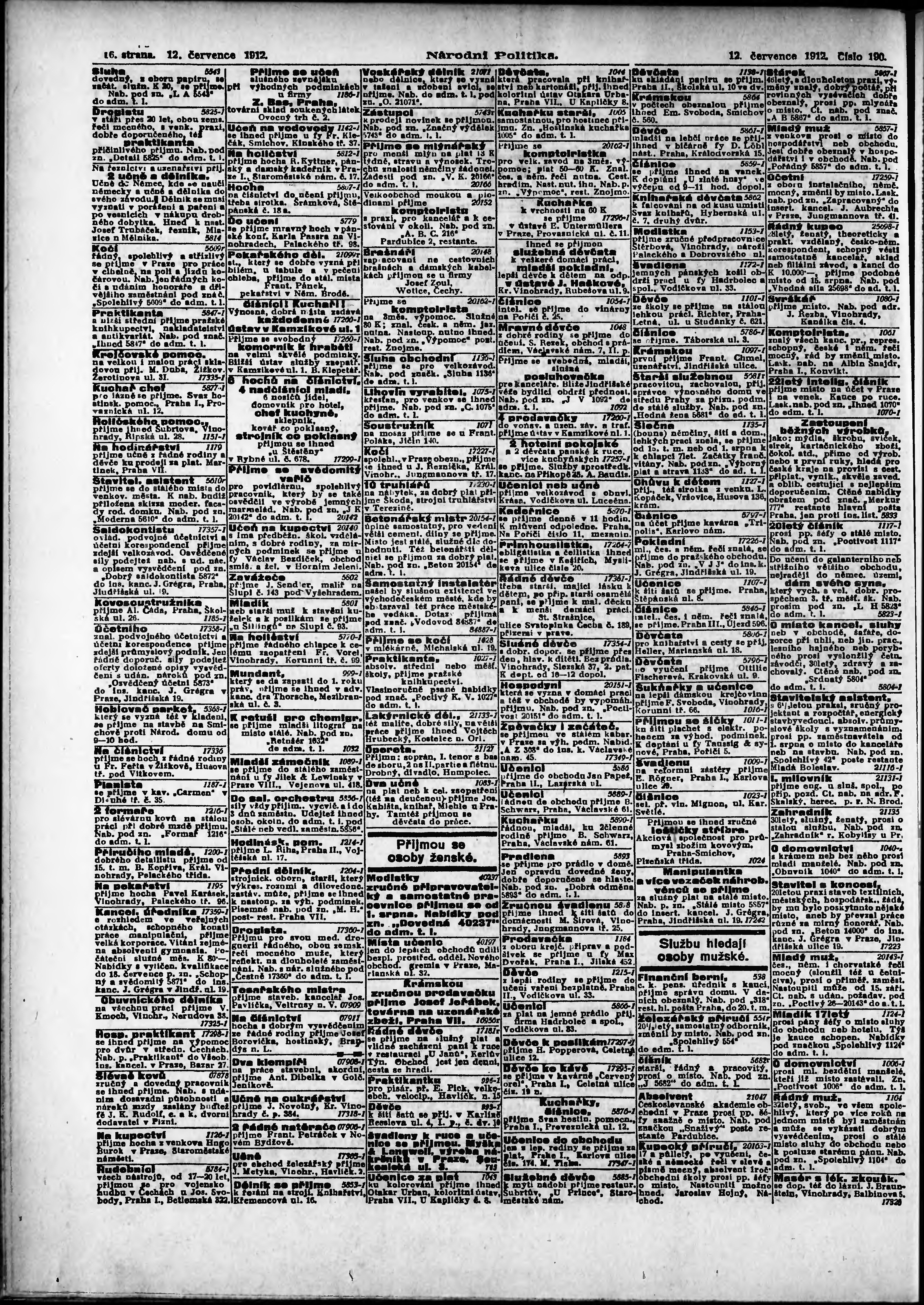 * Datum vydání výtisku: 12.7.1912 Číslo výtisku: 190 Poznámky k výtisku: ranní vydání;