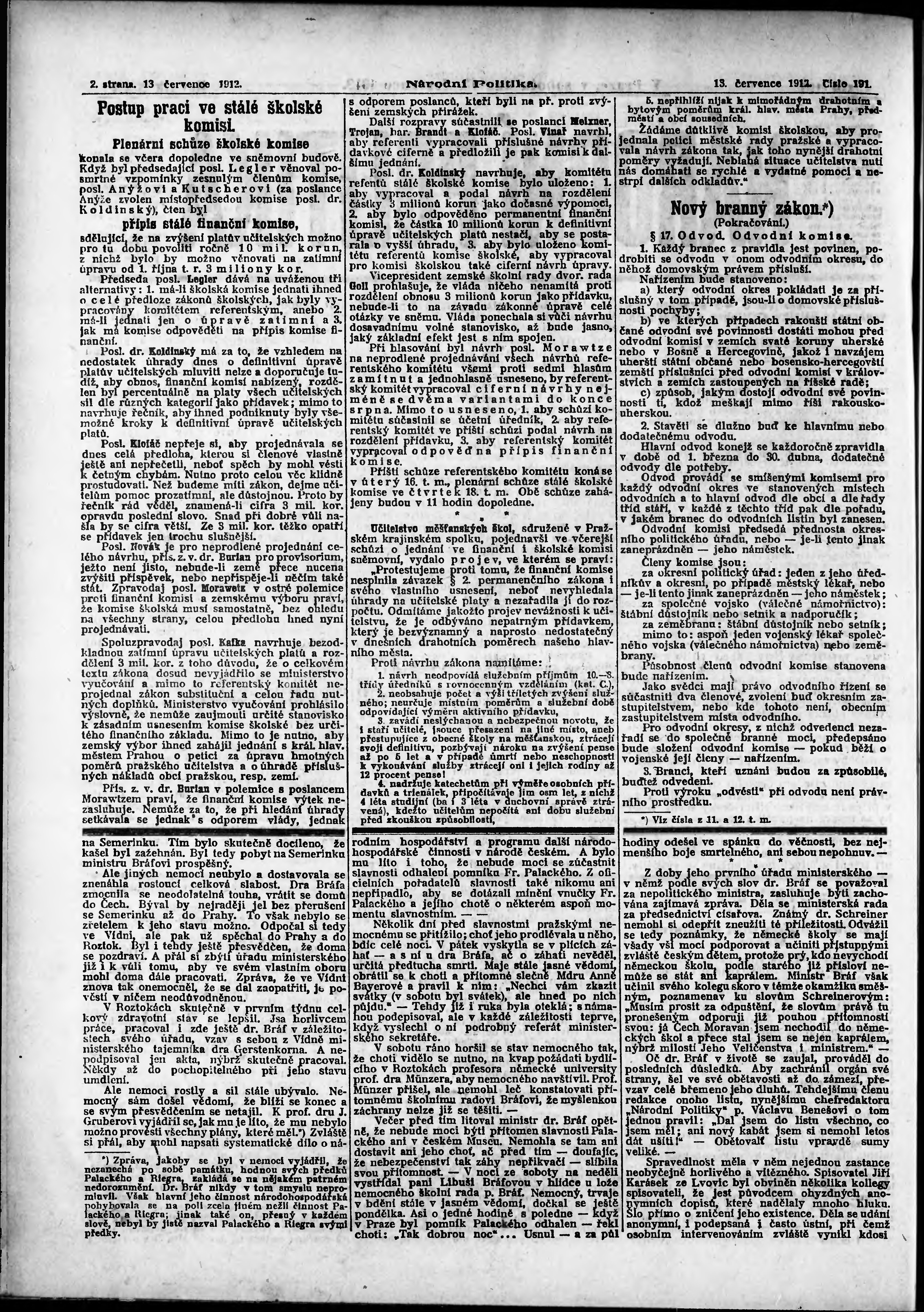 * Datum vydání výtisku: 13.7.1912 Číslo výtisku: 191 Poznámky k výtisku: ranní vydání;