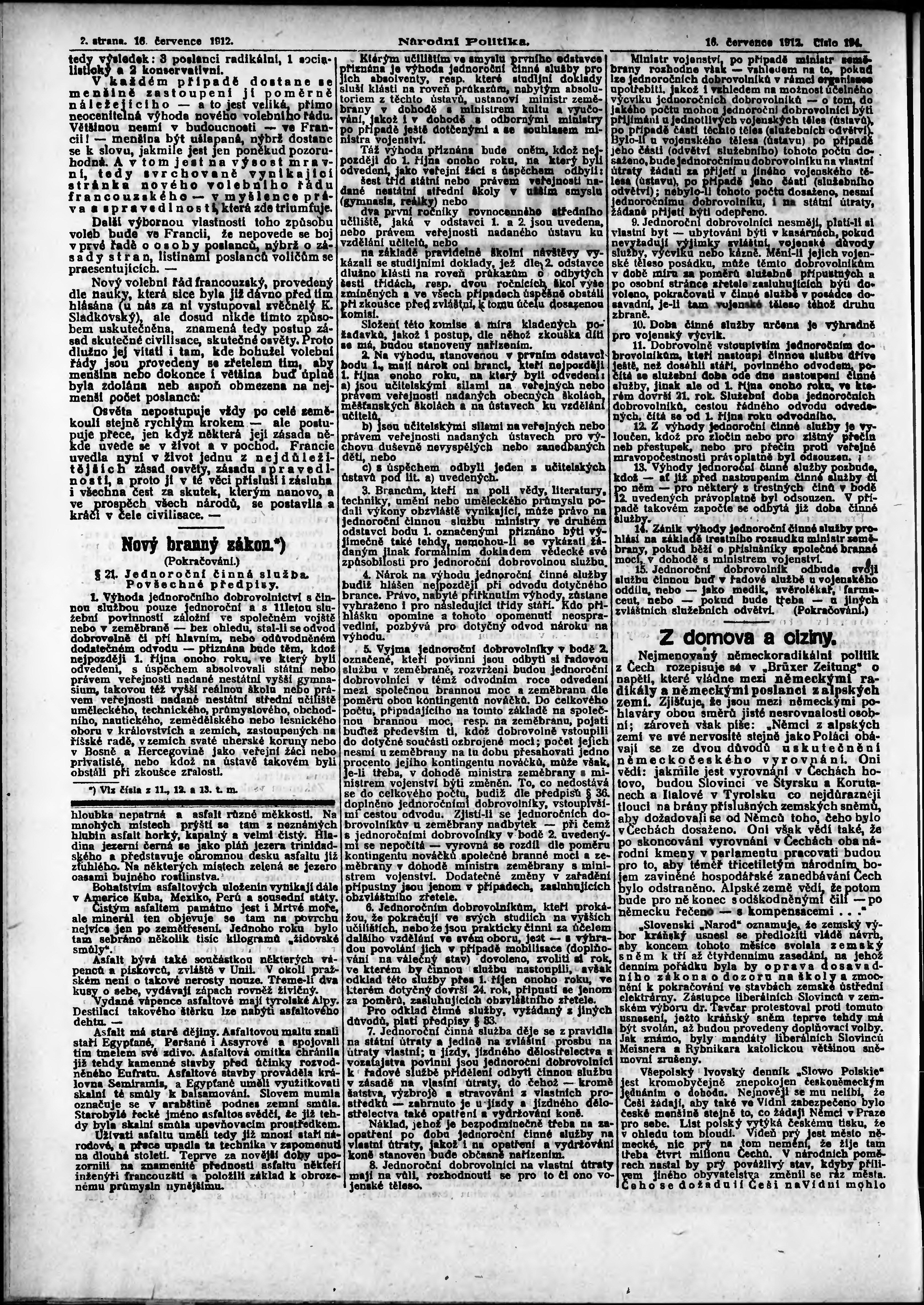 * Datum vydání výtisku: 16.7.1912 Číslo výtisku: 194 Poznámky k výtisku: ranní vydání;