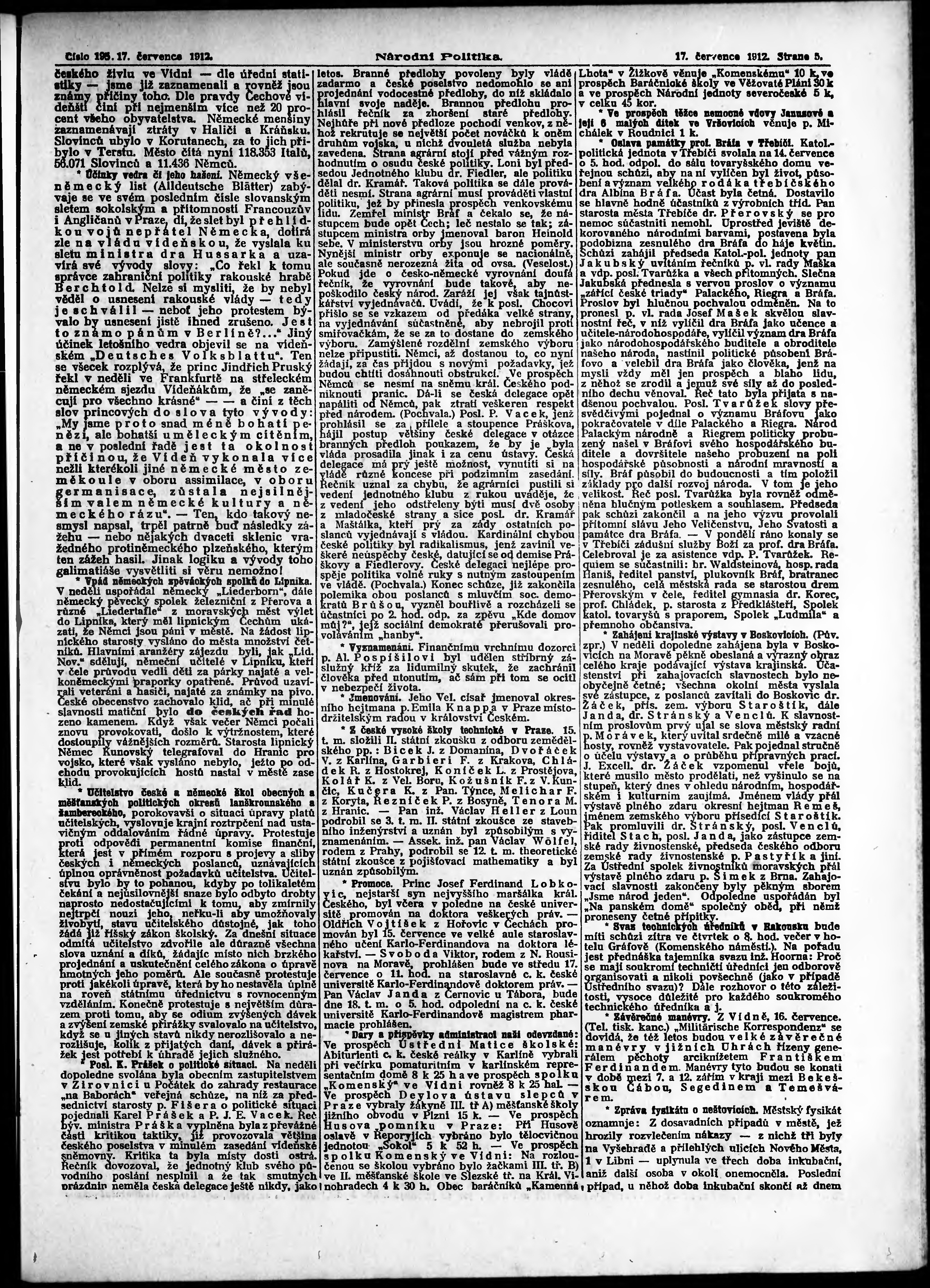 * Datum vydání výtisku: 17.7.1912 Číslo výtisku: 195 Poznámky k výtisku: ranní vydání;