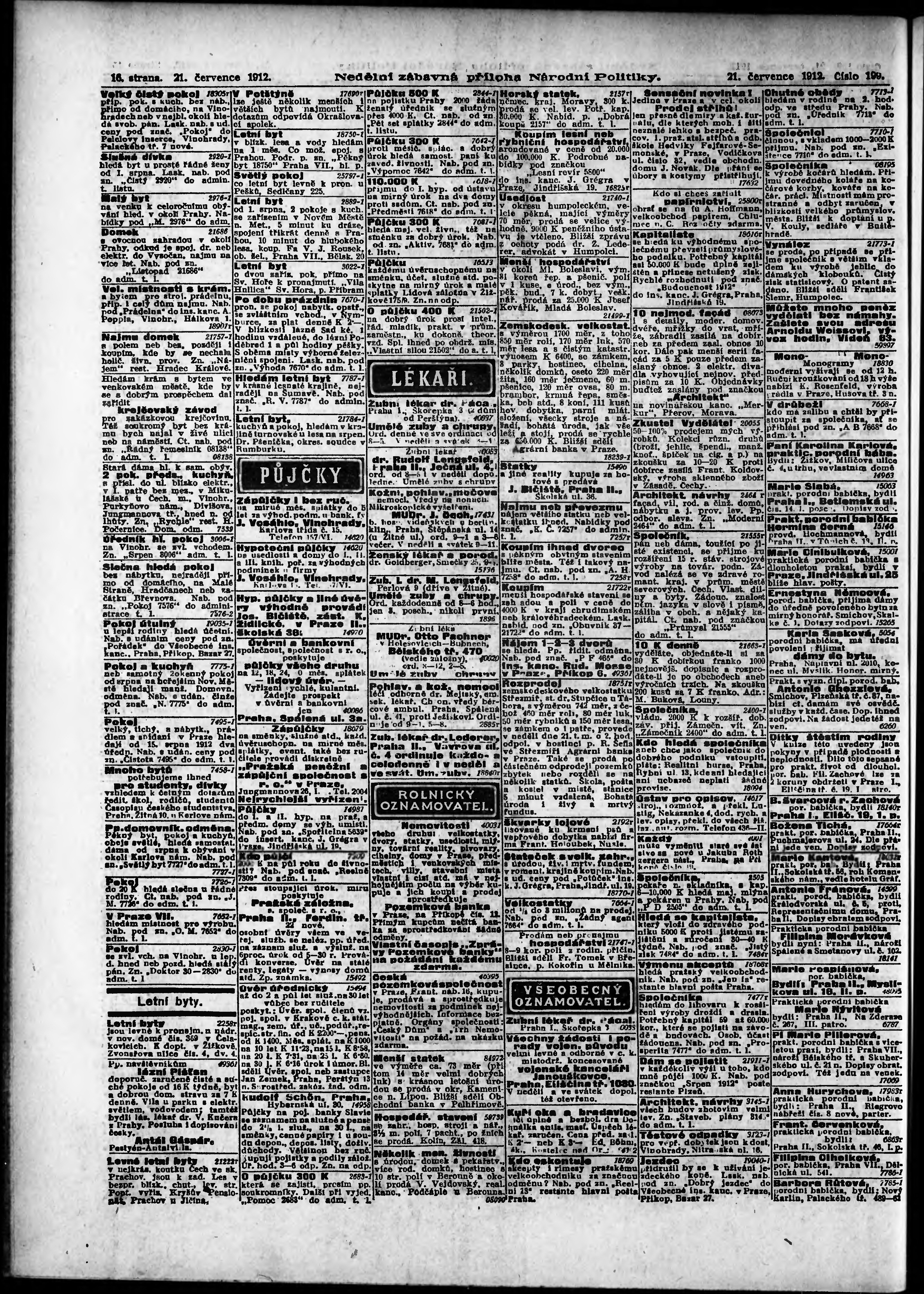 * Datum vydání výtisku: 21.7.1912 Číslo výtisku: 199 Typ výtisku: příloha