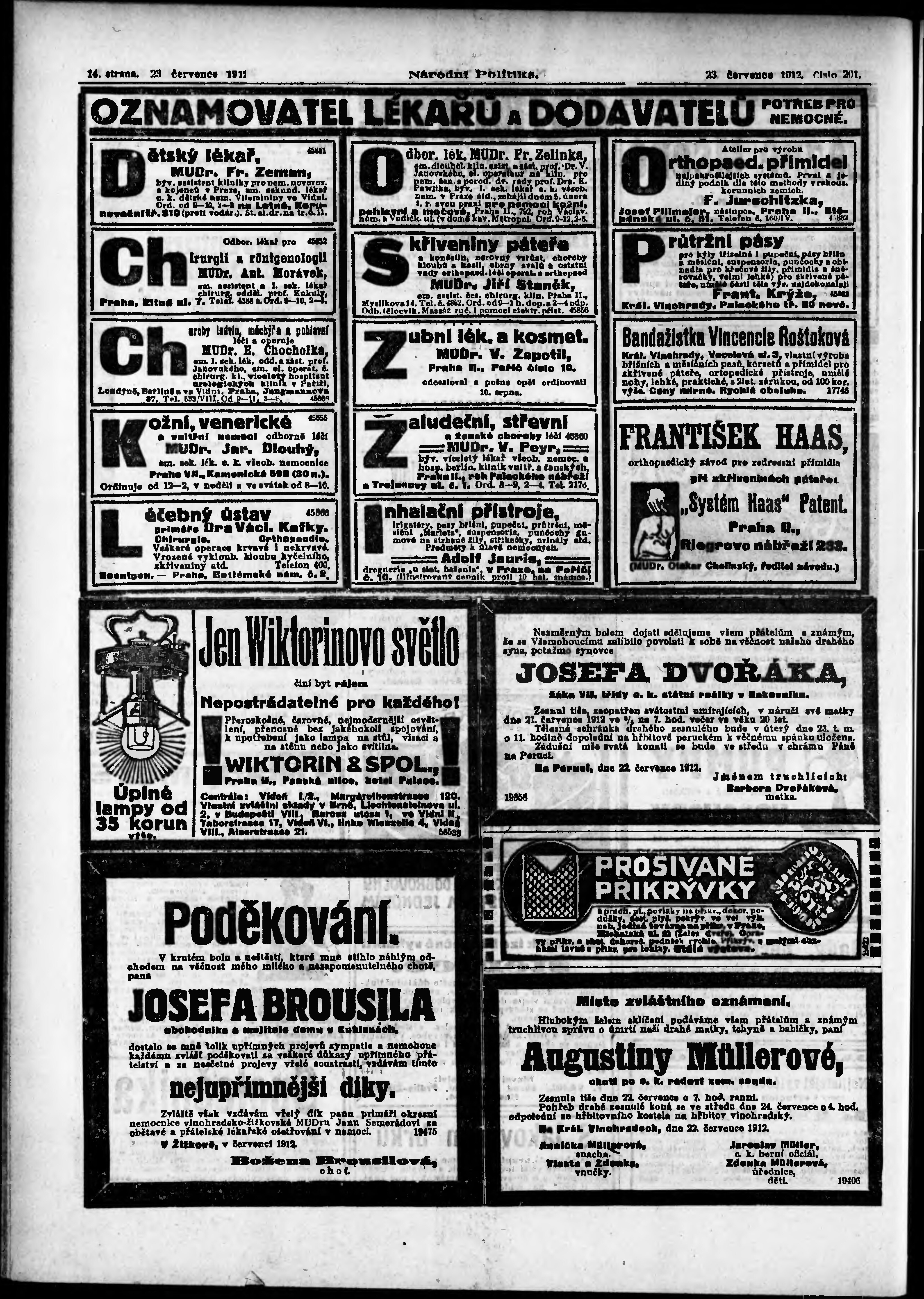 * Datum vydání výtisku: 23.7.1912 Číslo výtisku: 201 Poznámky k výtisku: ranní vydání;