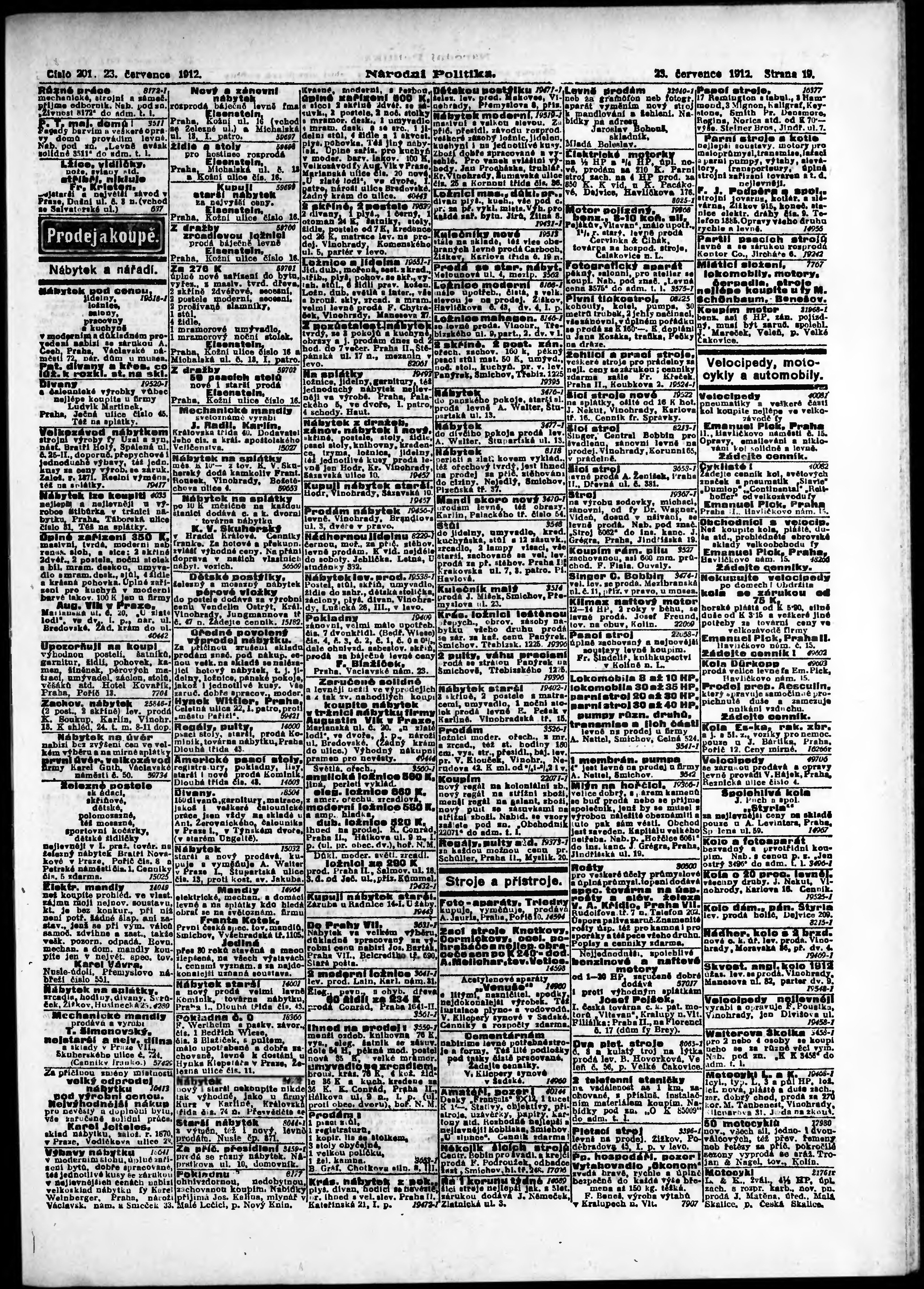 * Datum vydání výtisku: 23.7.1912 Číslo výtisku: 201 Poznámky k výtisku: ranní vydání;
