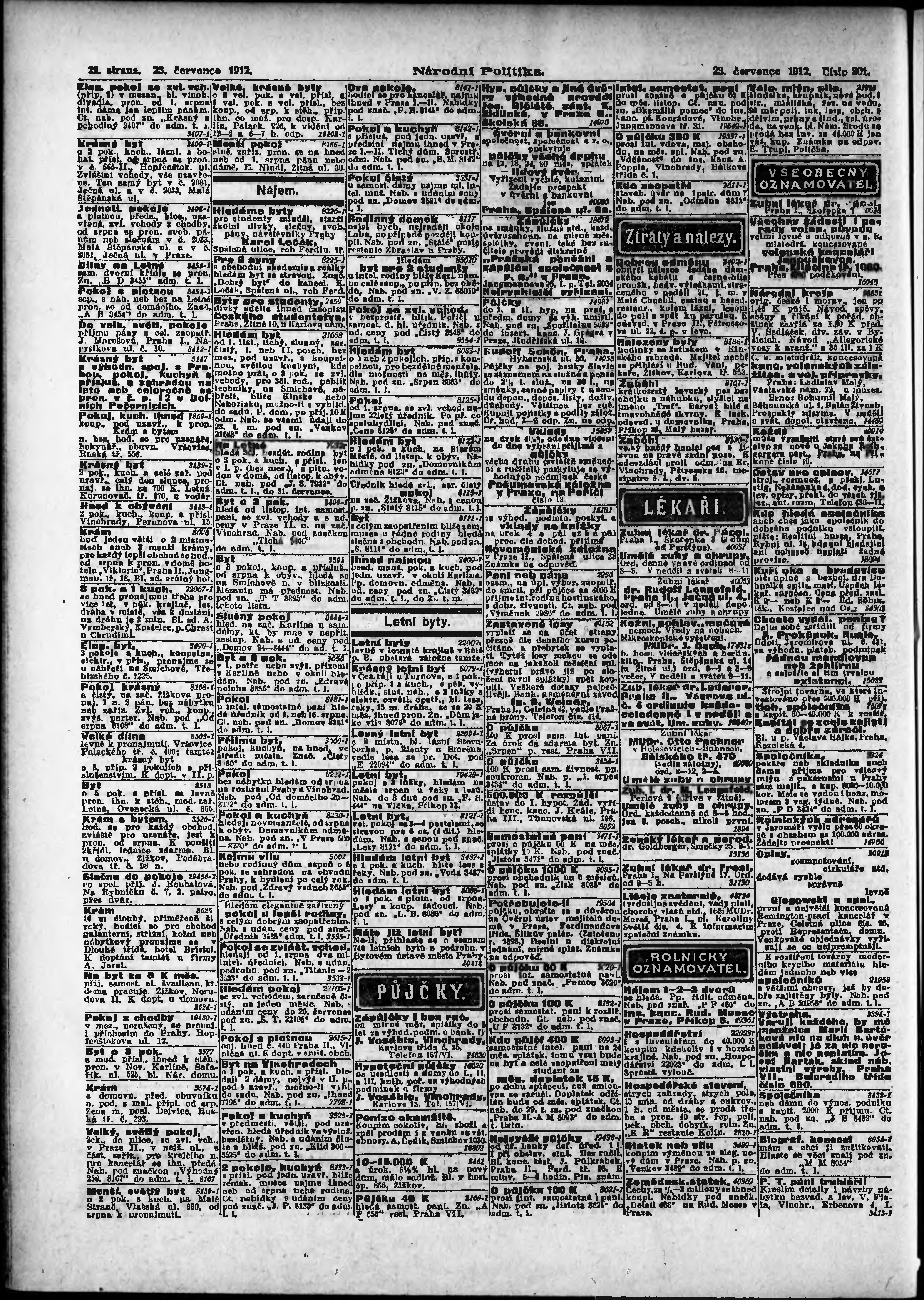* Datum vydání výtisku: 23.7.1912 Číslo výtisku: 201 Poznámky k výtisku: ranní vydání;