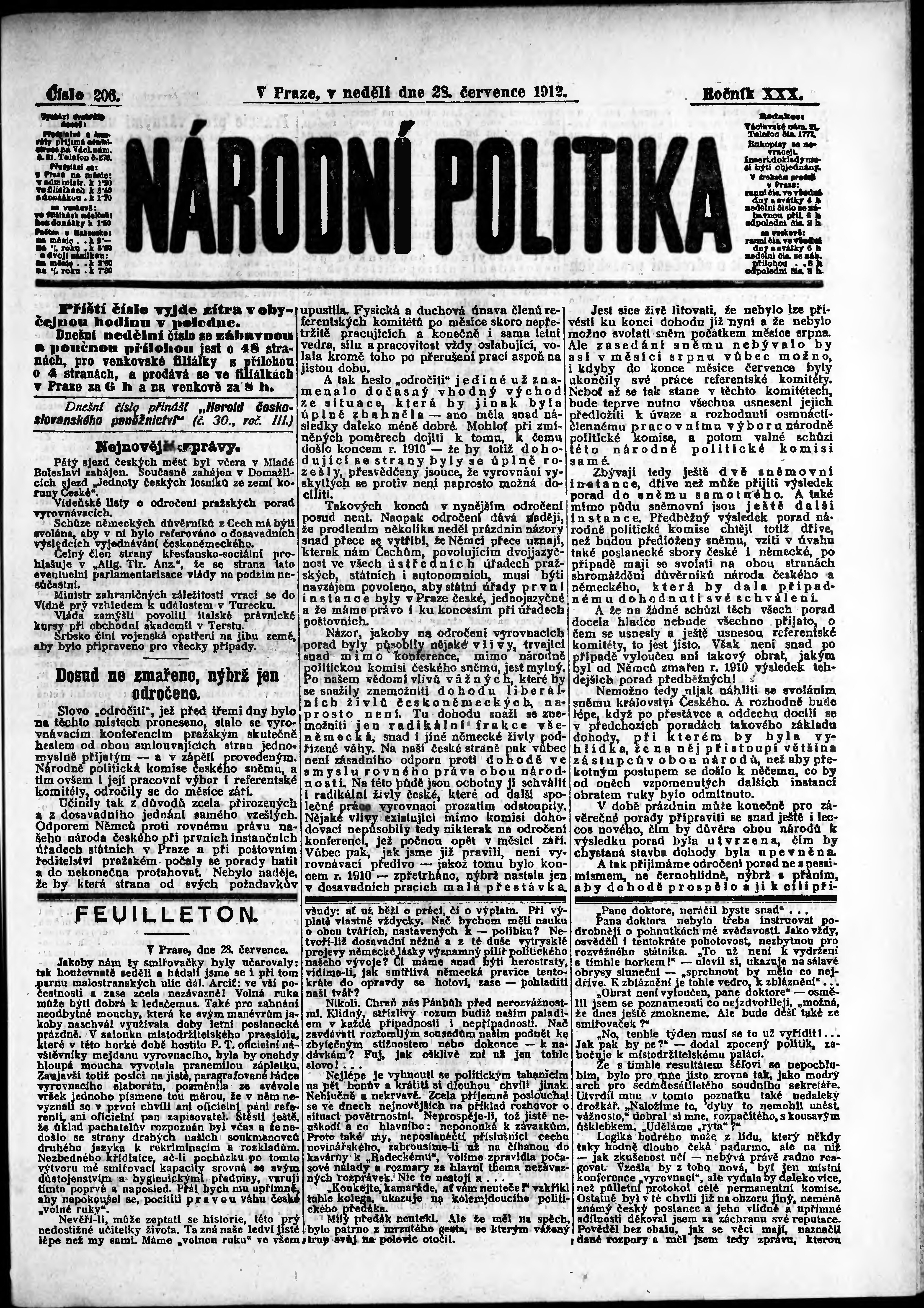 * Datum vydání výtisku: 28.7.1912 Číslo výtisku: 206 Poznámky k výtisku: ranní vydání;