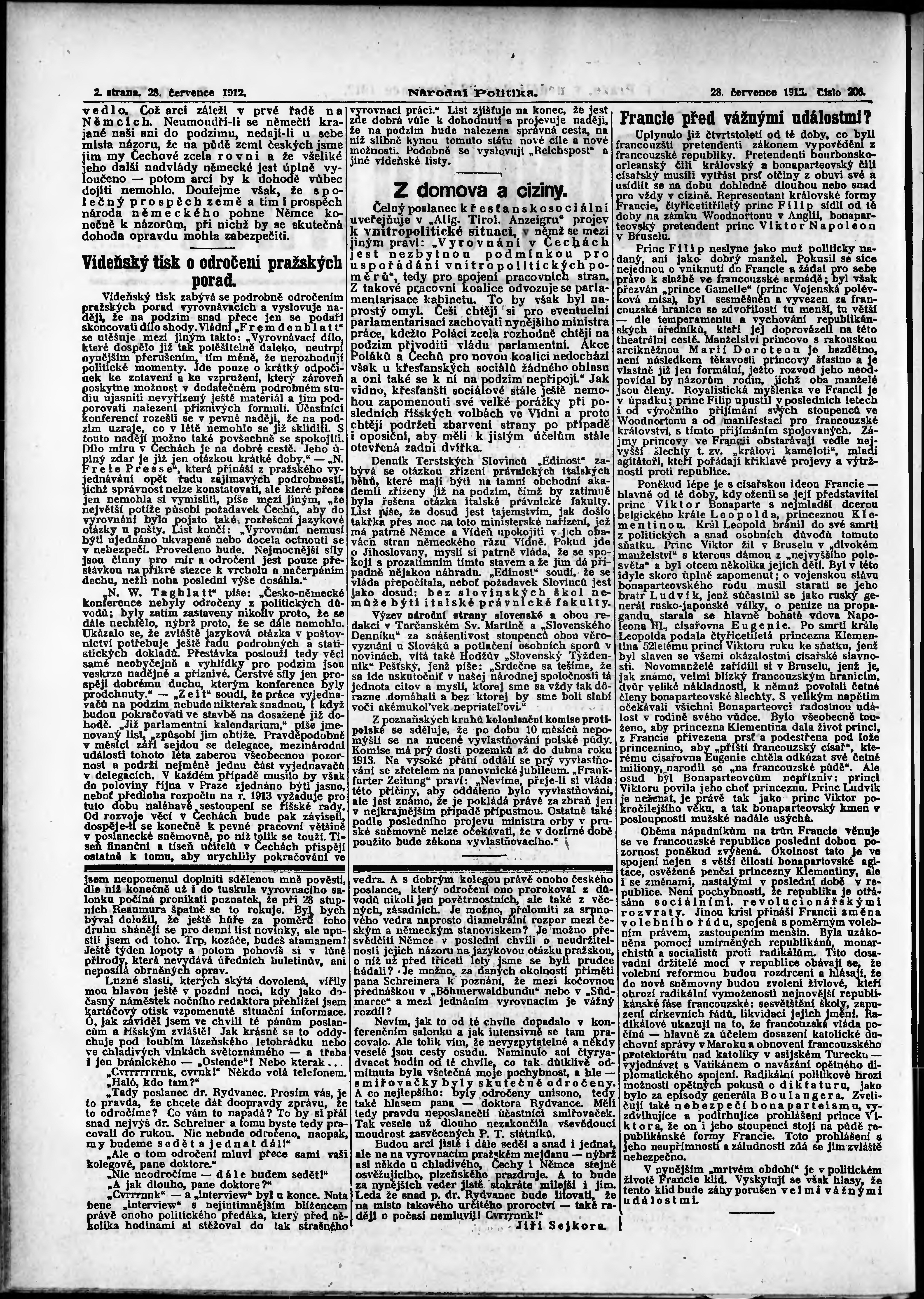* Datum vydání výtisku: 28.7.1912 Číslo výtisku: 206 Poznámky k výtisku: ranní vydání;