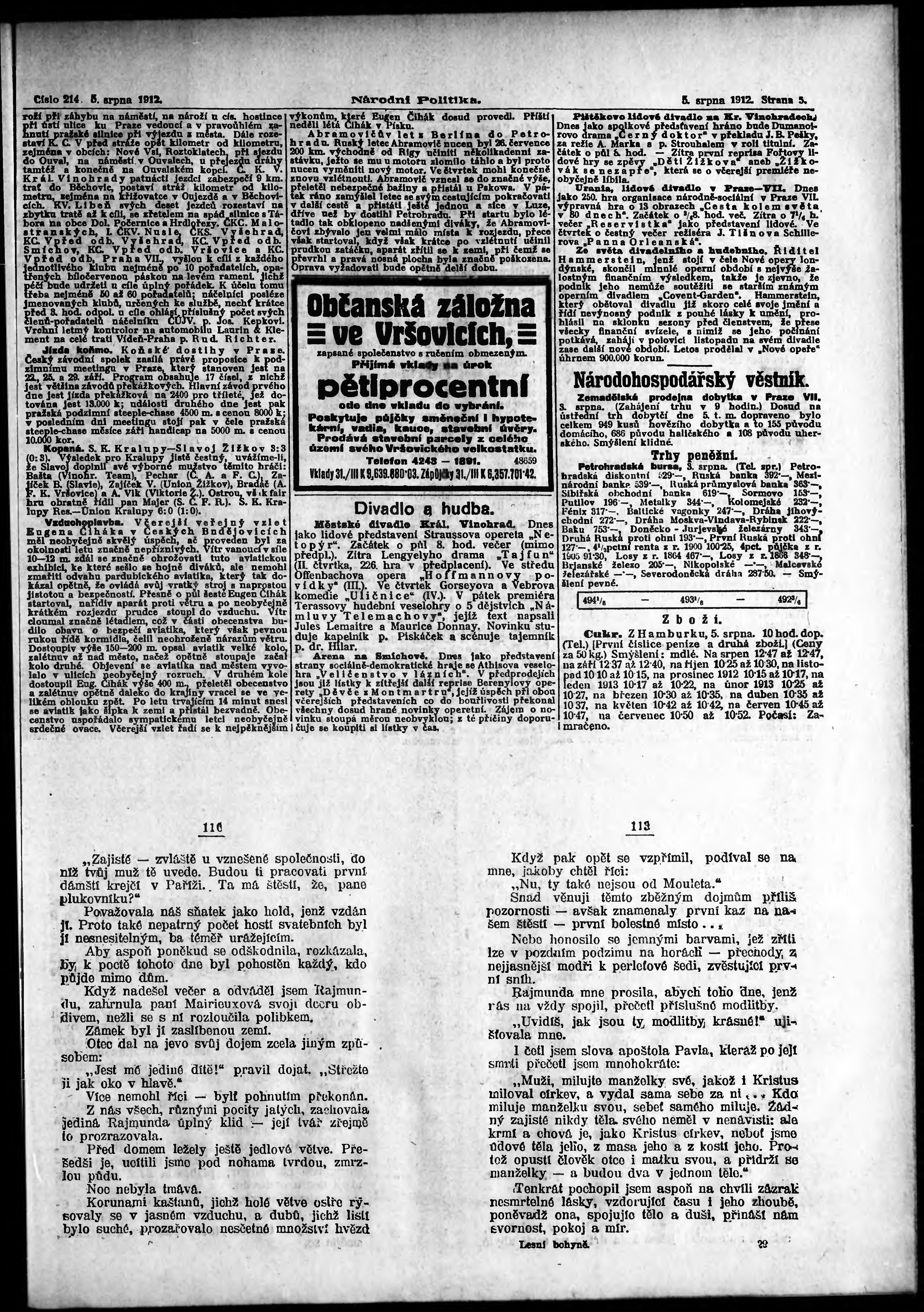 * Datum vydání výtisku: 5.8.1912 Číslo výtisku: 214 Poznámky k výtisku: ranní vydání;