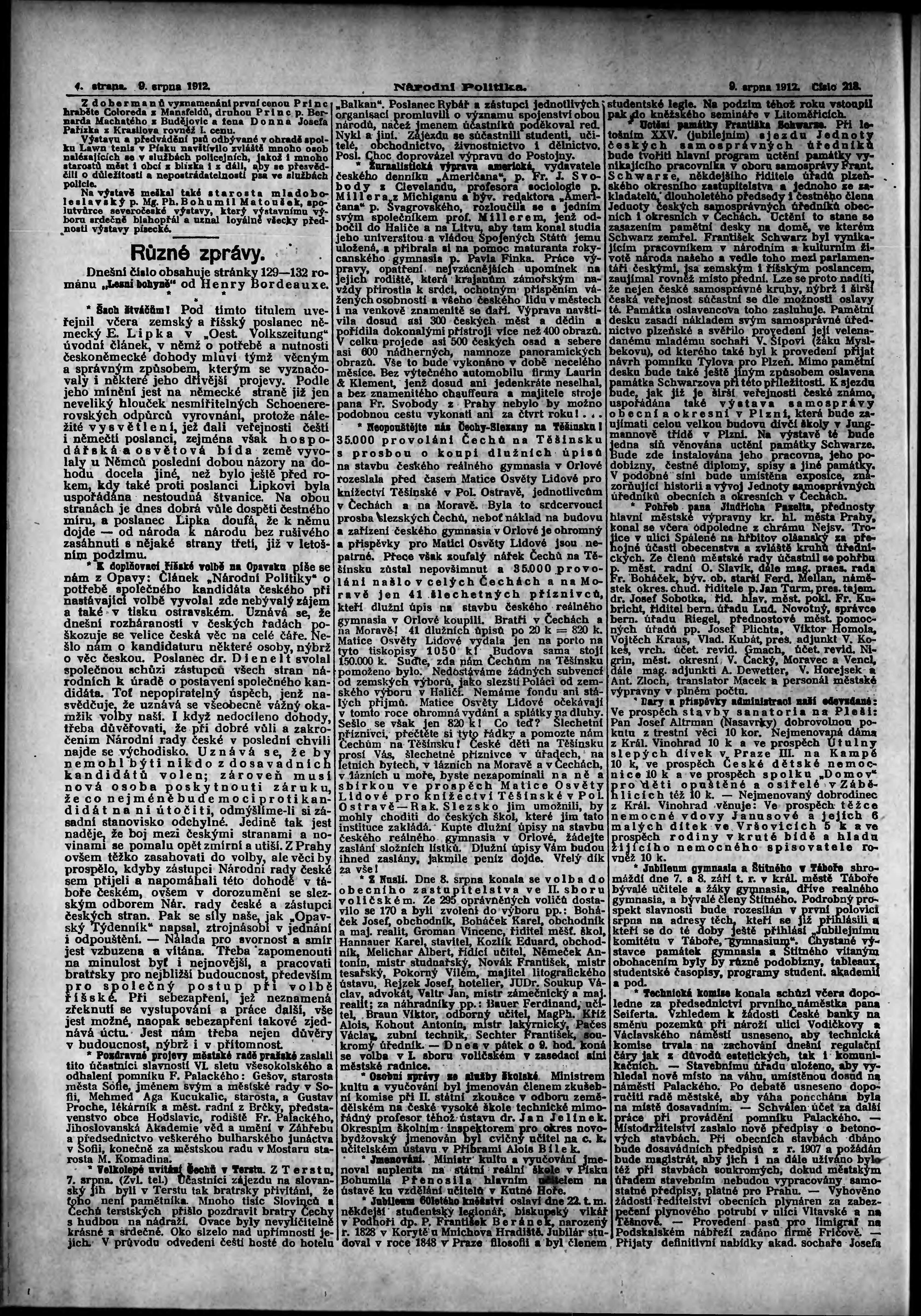 * Datum vydání výtisku: 9.8.1912 Číslo výtisku: 218 Poznámky k výtisku: ranní vydání;