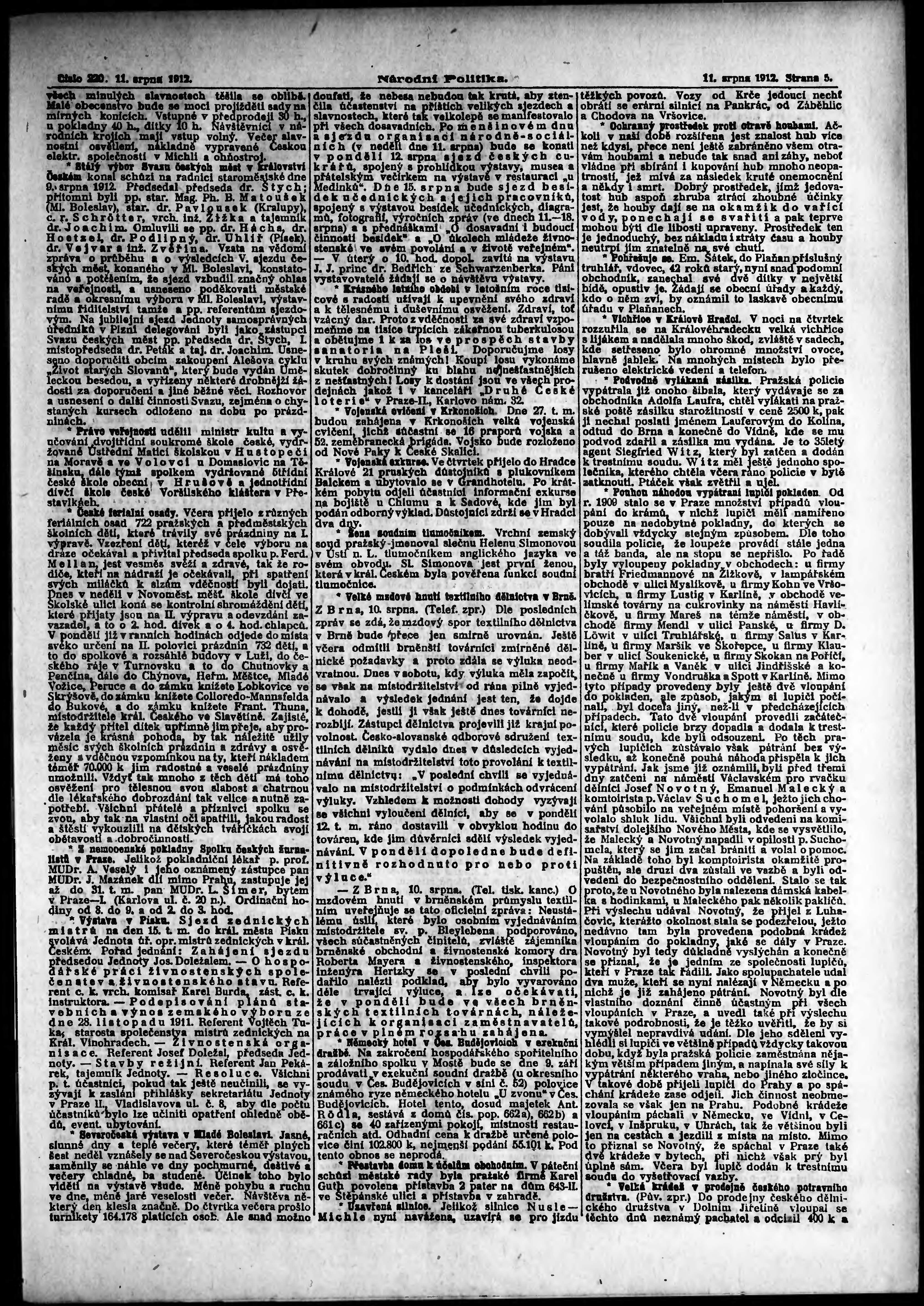 * Datum vydání výtisku: 11.8.1912 Číslo výtisku: 220 Poznámky k výtisku: ranní vydání;