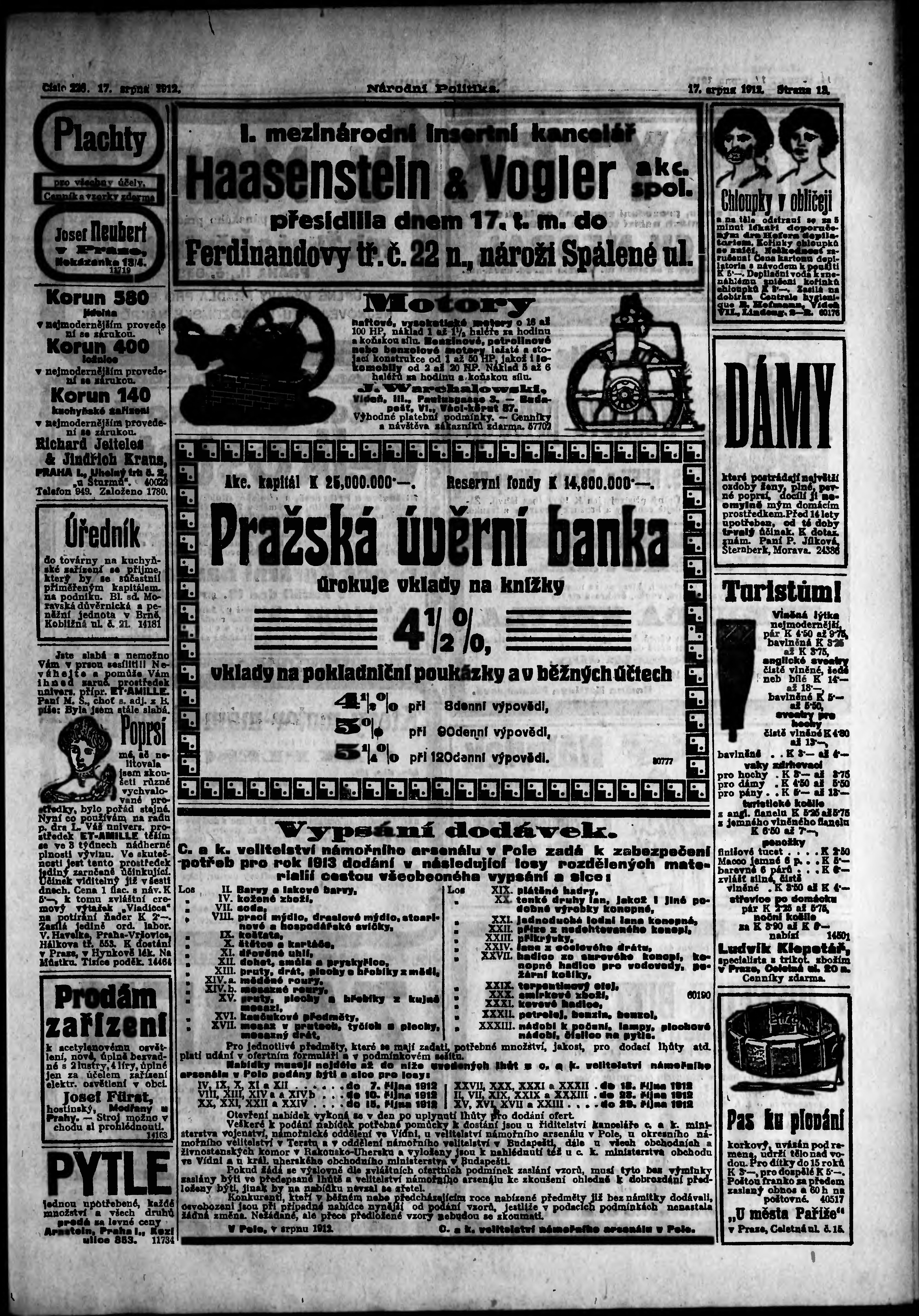 * Datum vydání výtisku: 17.8.1912 Číslo výtisku: 226 Poznámky k výtisku: ranní vydání;