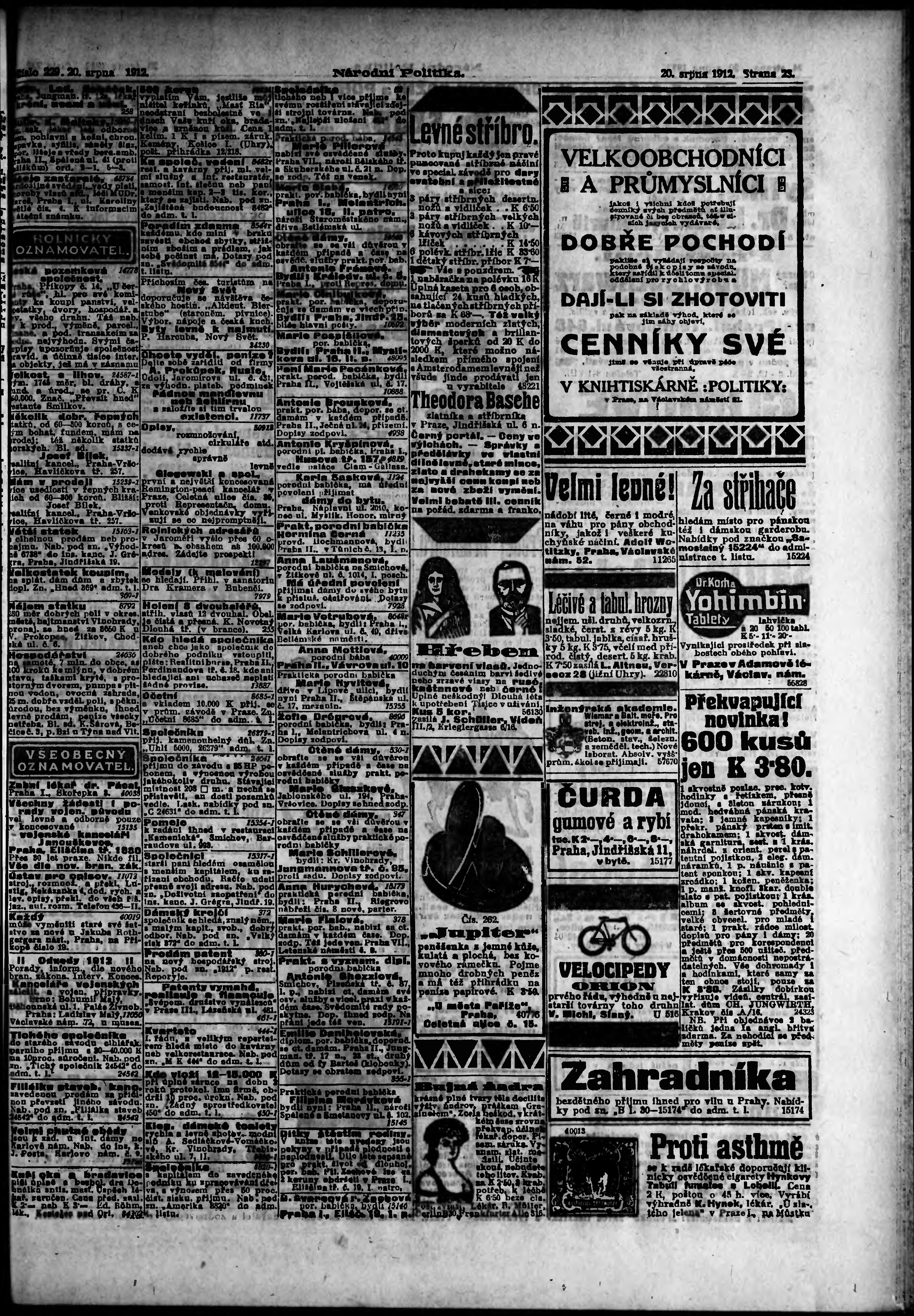 * Datum vydání výtisku: 20.8.1912 Číslo výtisku: 229 Poznámky k výtisku: ranní vydání;