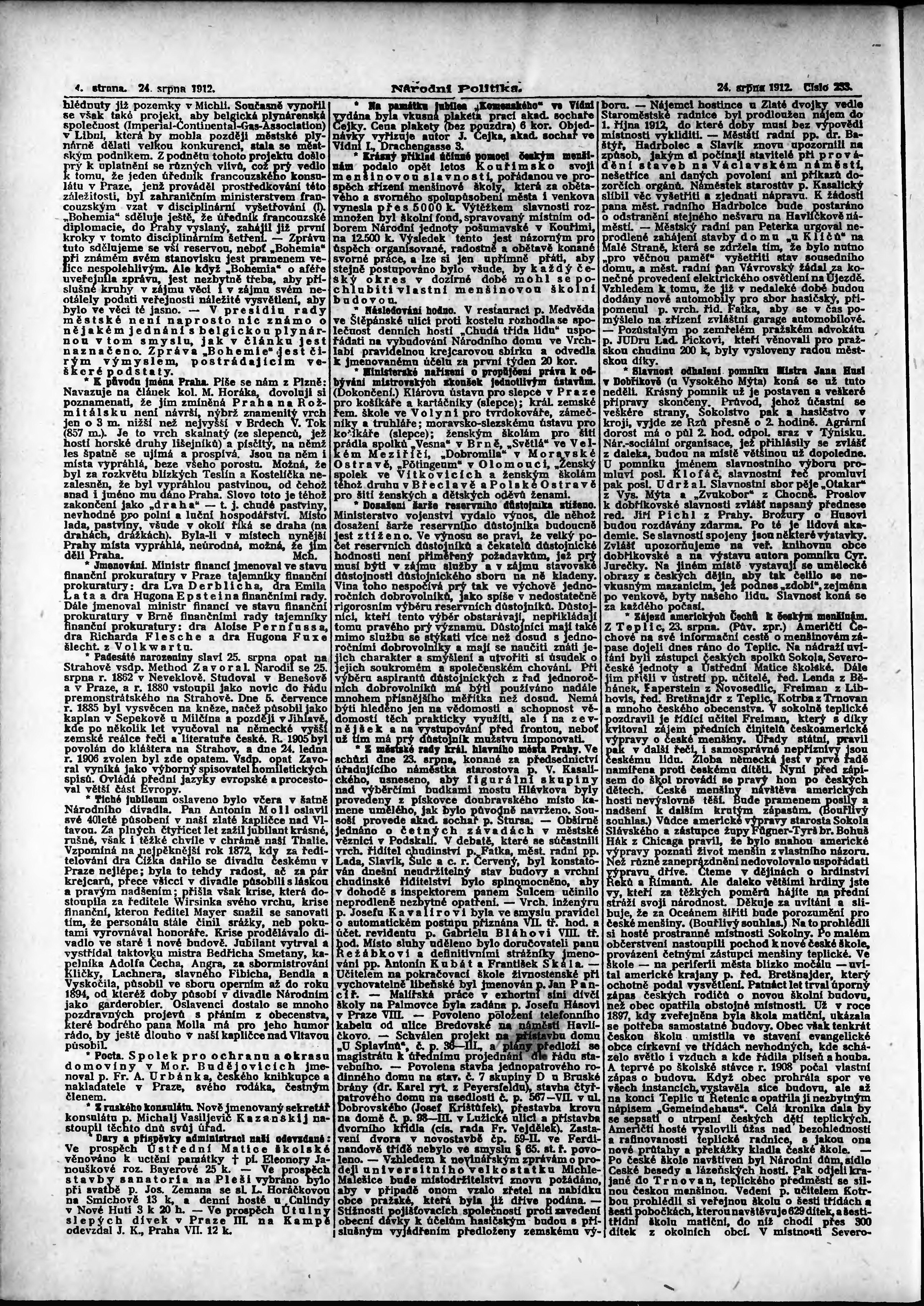 * Datum vydání výtisku: 24.8.1912 Číslo výtisku: 233 Poznámky k výtisku: ranní vydání;