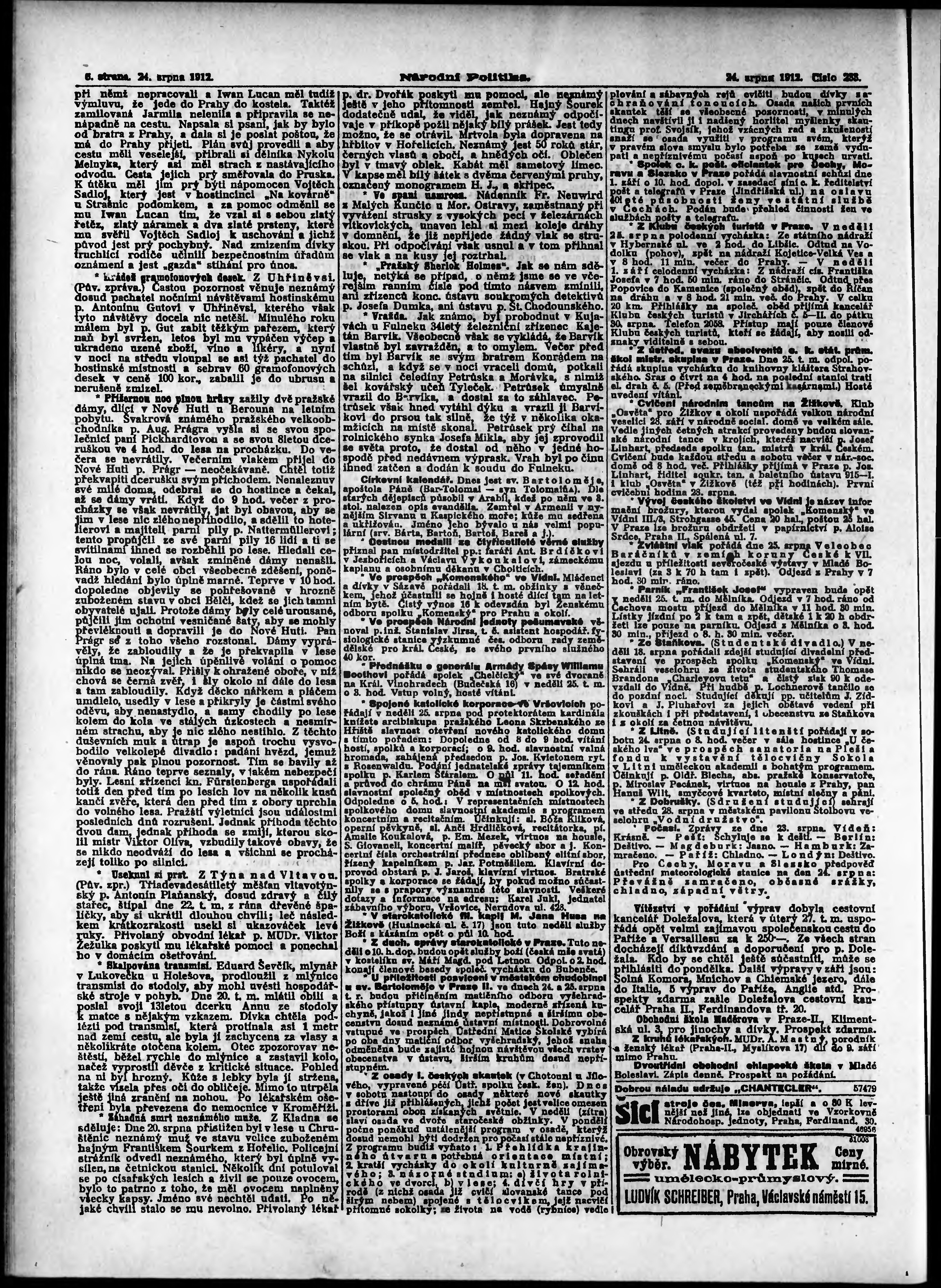 * Datum vydání výtisku: 24.8.1912 Číslo výtisku: 233 Poznámky k výtisku: ranní vydání;