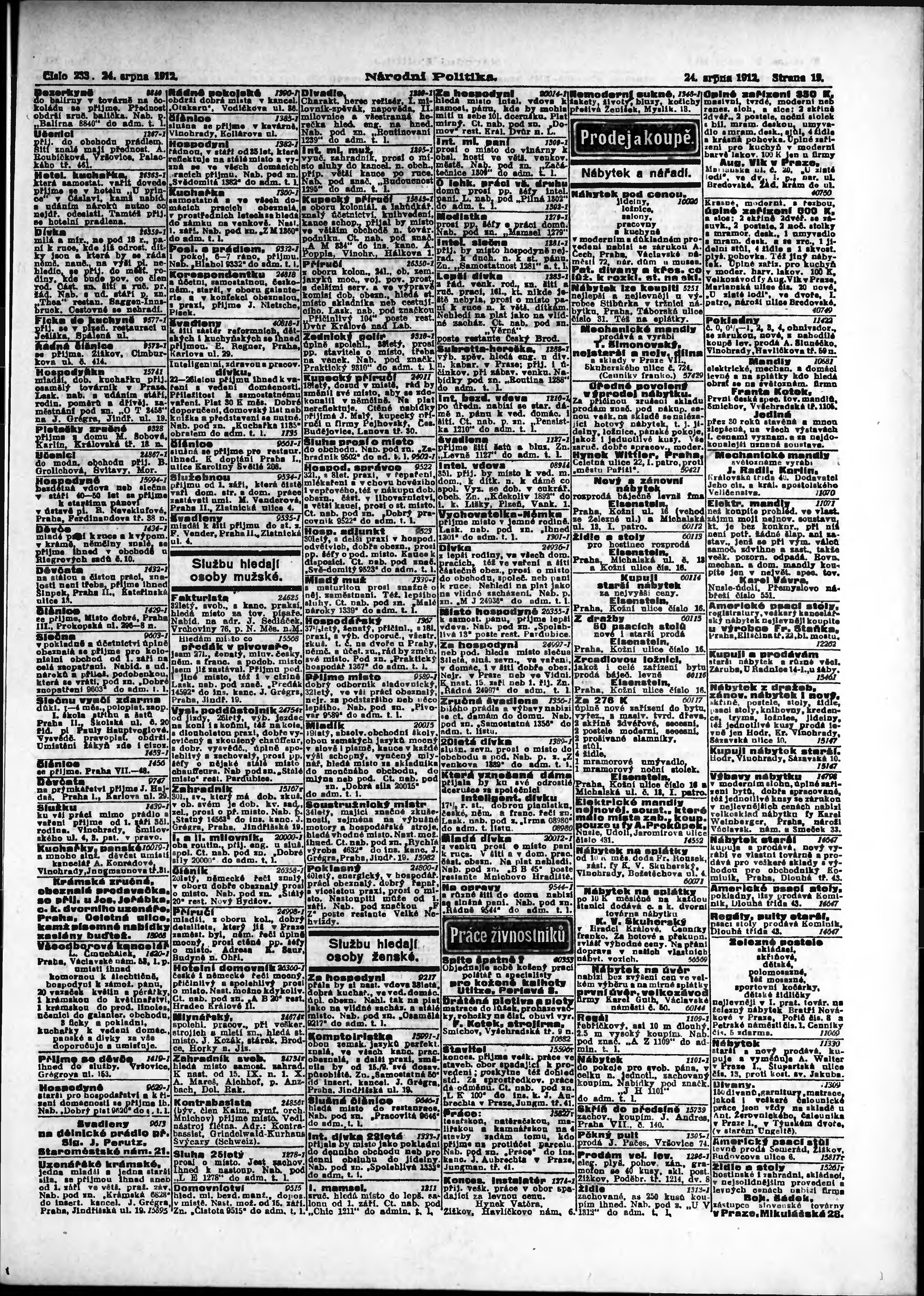 * Datum vydání výtisku: 24.8.1912 Číslo výtisku: 233 Poznámky k výtisku: ranní vydání;