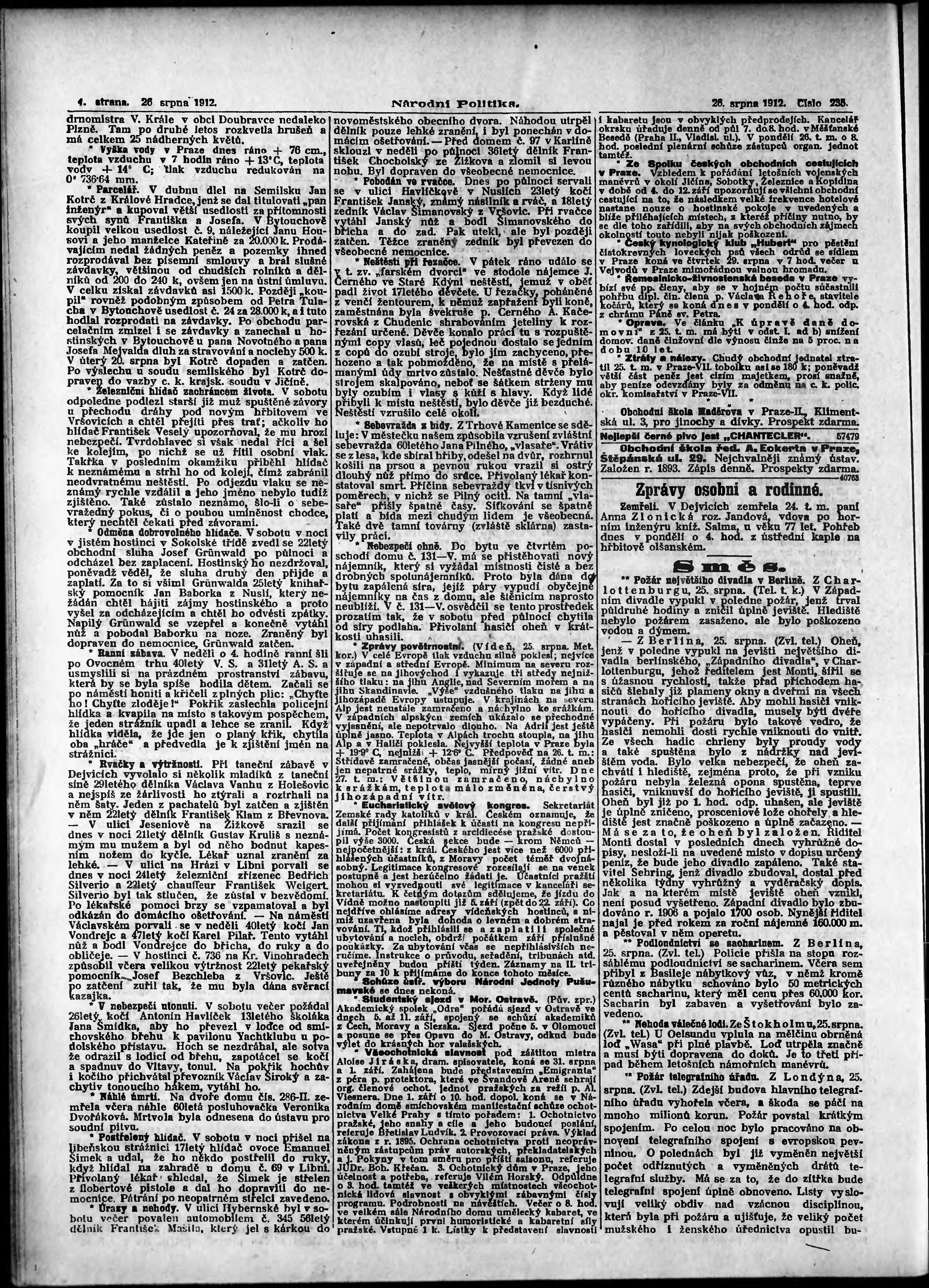 * Datum vydání výtisku: 26.8.1912 Číslo výtisku: 235 Poznámky k výtisku: ranní vydání;