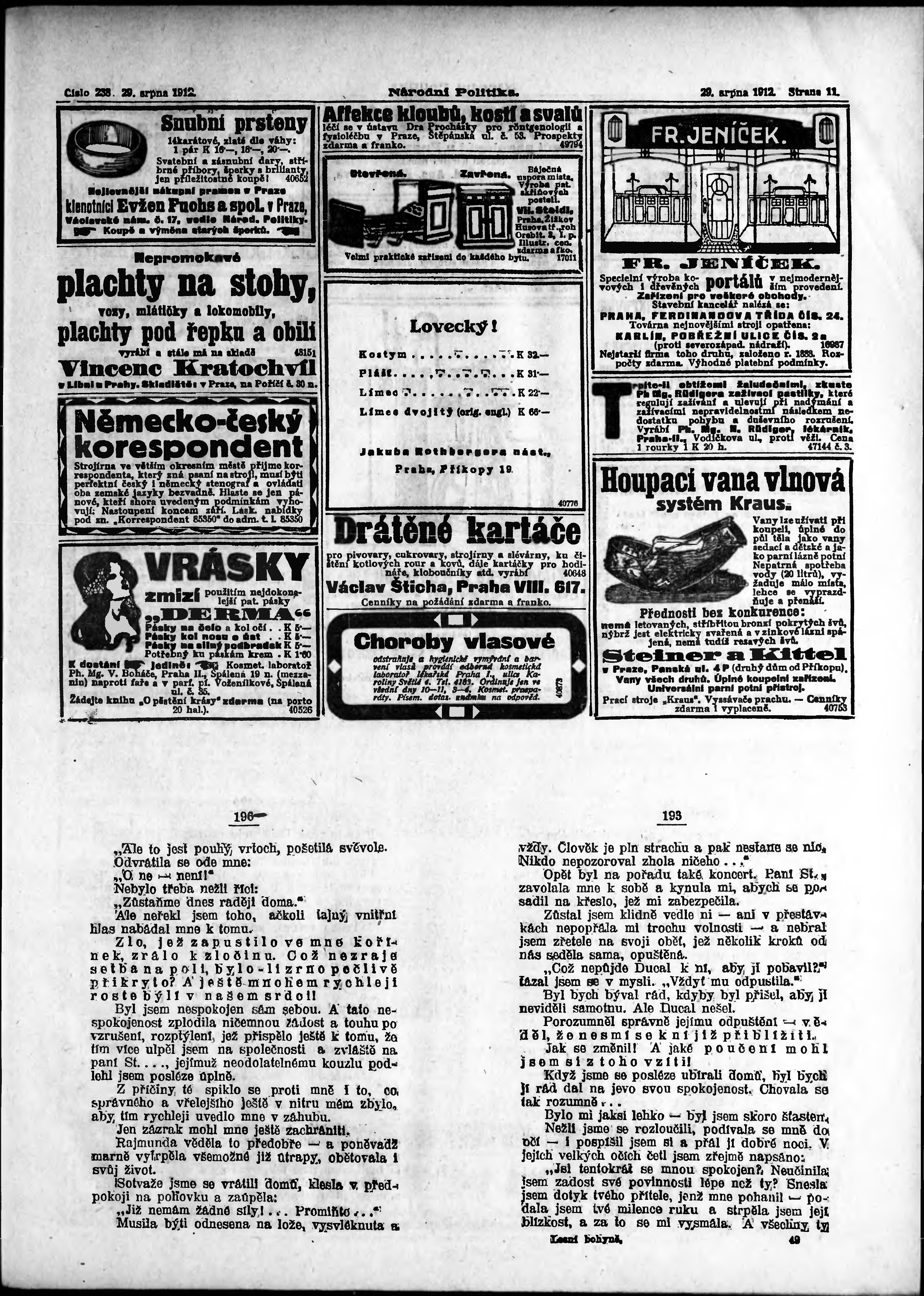 * Datum vydání výtisku: 29.8.1912 Číslo výtisku: 238 Poznámky k výtisku: ranní vydání;