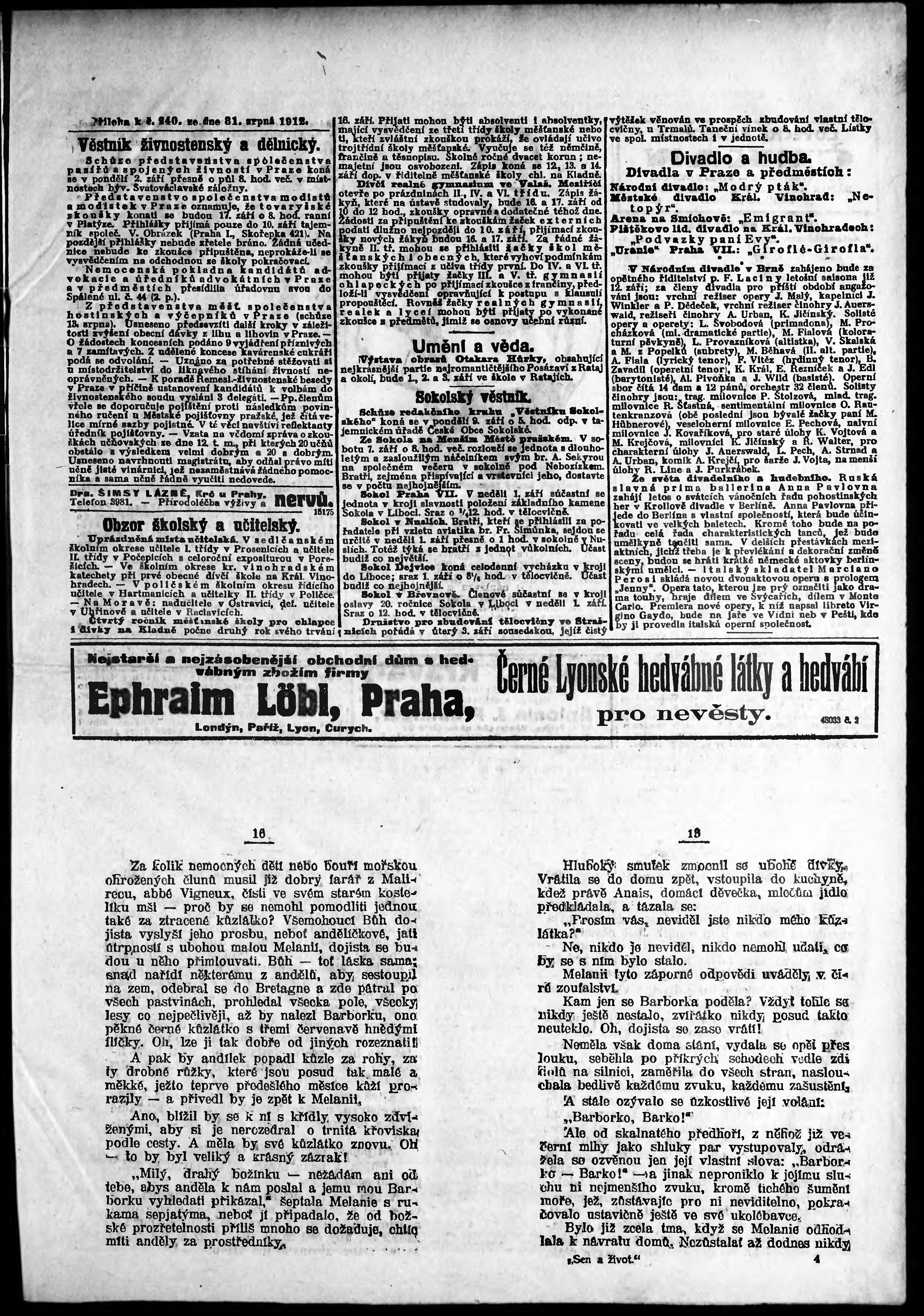 * Datum vydání výtisku: 31.8.1912 Číslo výtisku: 240 Typ výtisku: příloha