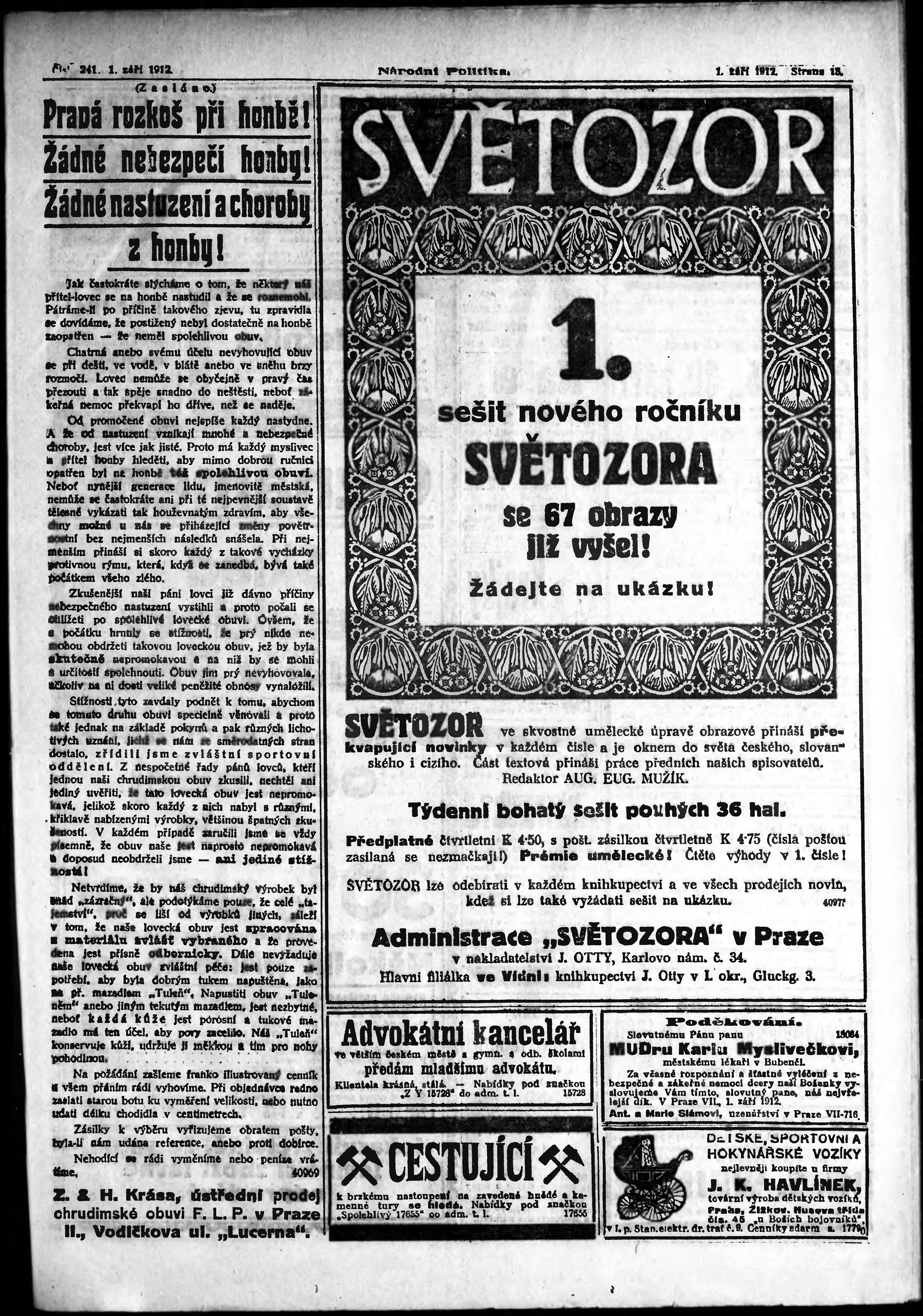* Datum vydání výtisku: 1.9.1912 Číslo výtisku: 241 Poznámky k výtisku: ranní vydání;