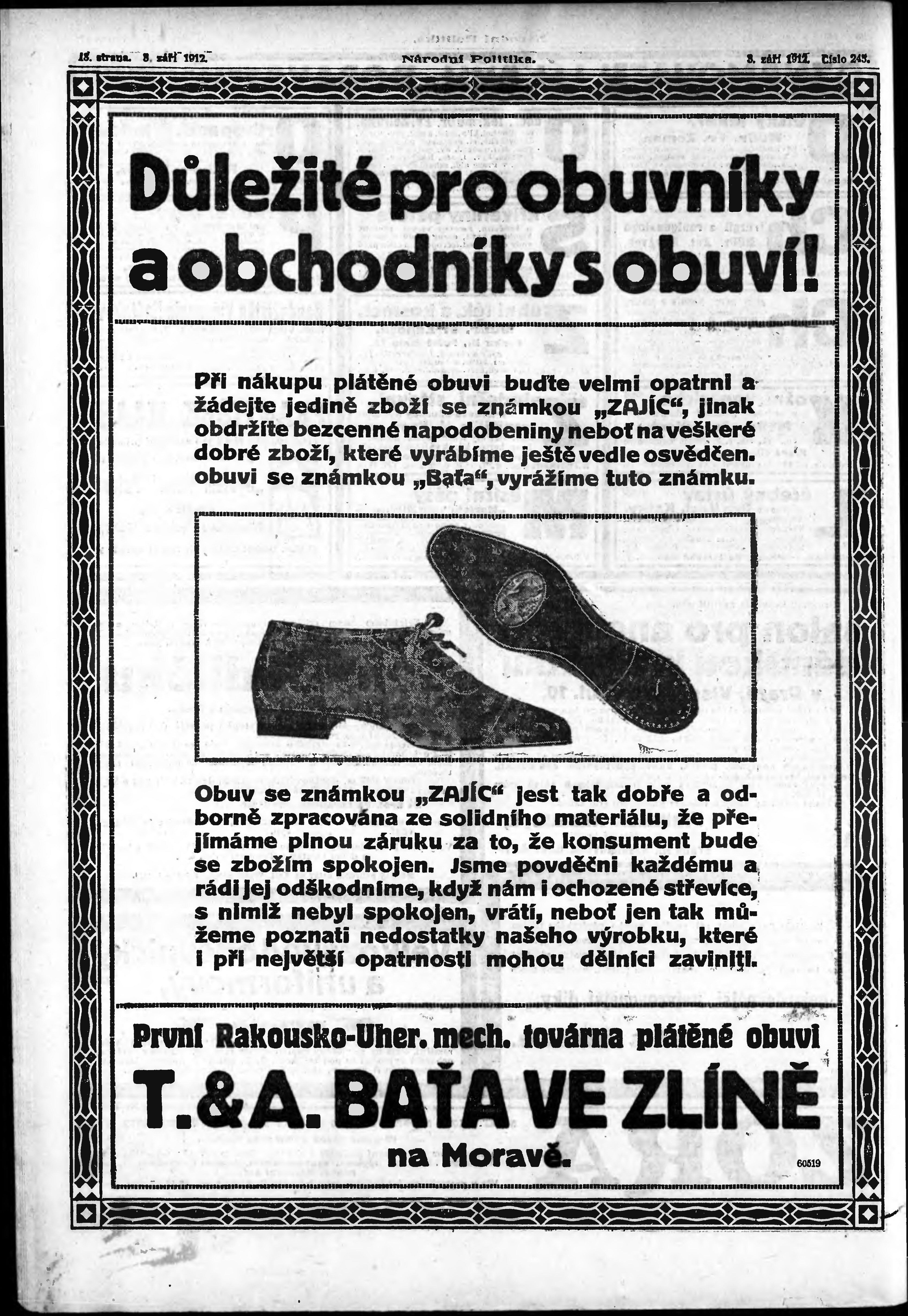 * Datum vydání výtisku: 3.9.1912 Číslo výtisku: 243 Poznámky k výtisku: ranní vydání;