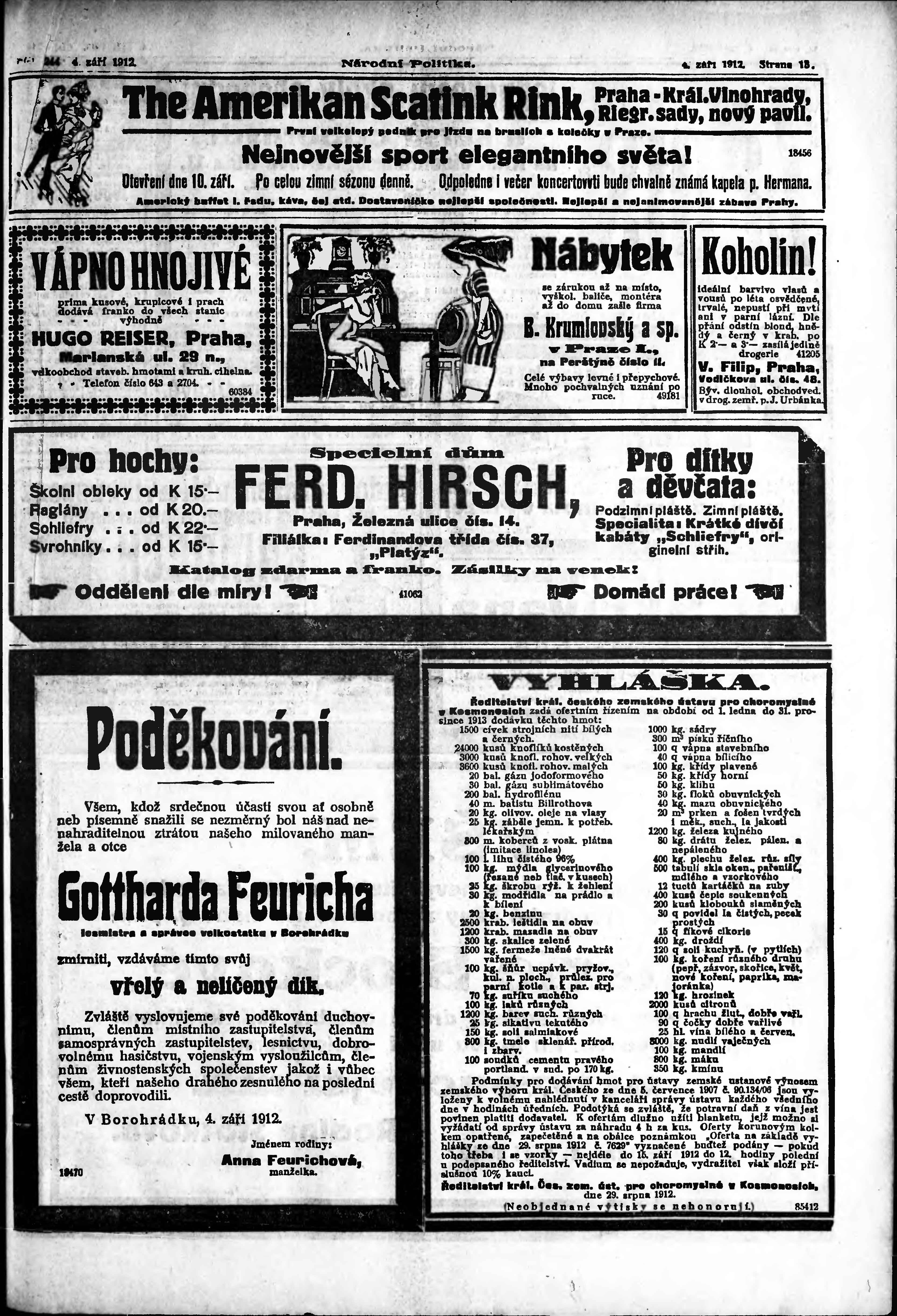 * Datum vydání výtisku: 4.9.1912 Číslo výtisku: 244 Poznámky k výtisku: ranní vydání;