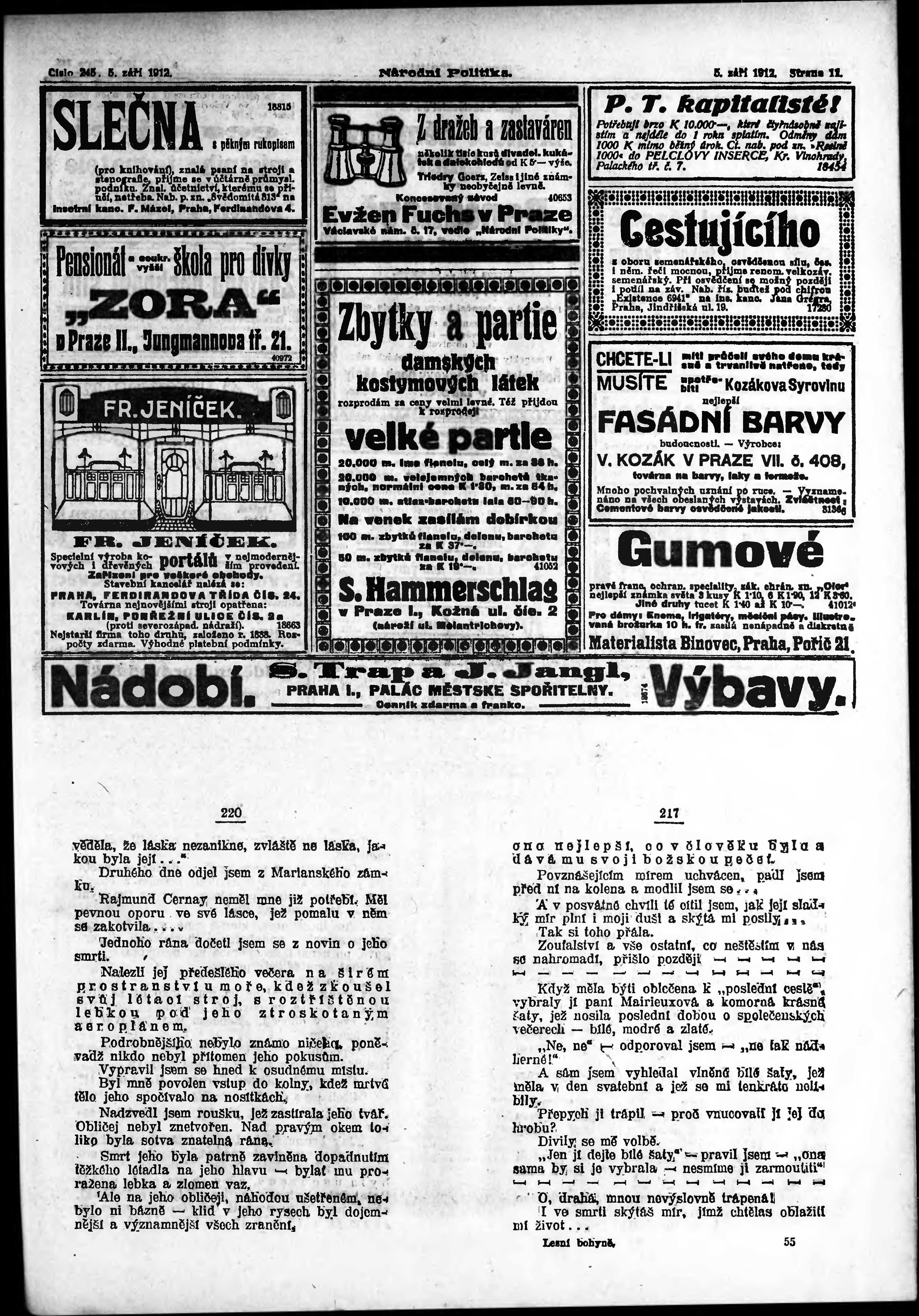 * Datum vydání výtisku: 5.9.1912 Číslo výtisku: 245 Poznámky k výtisku: ranní vydání;