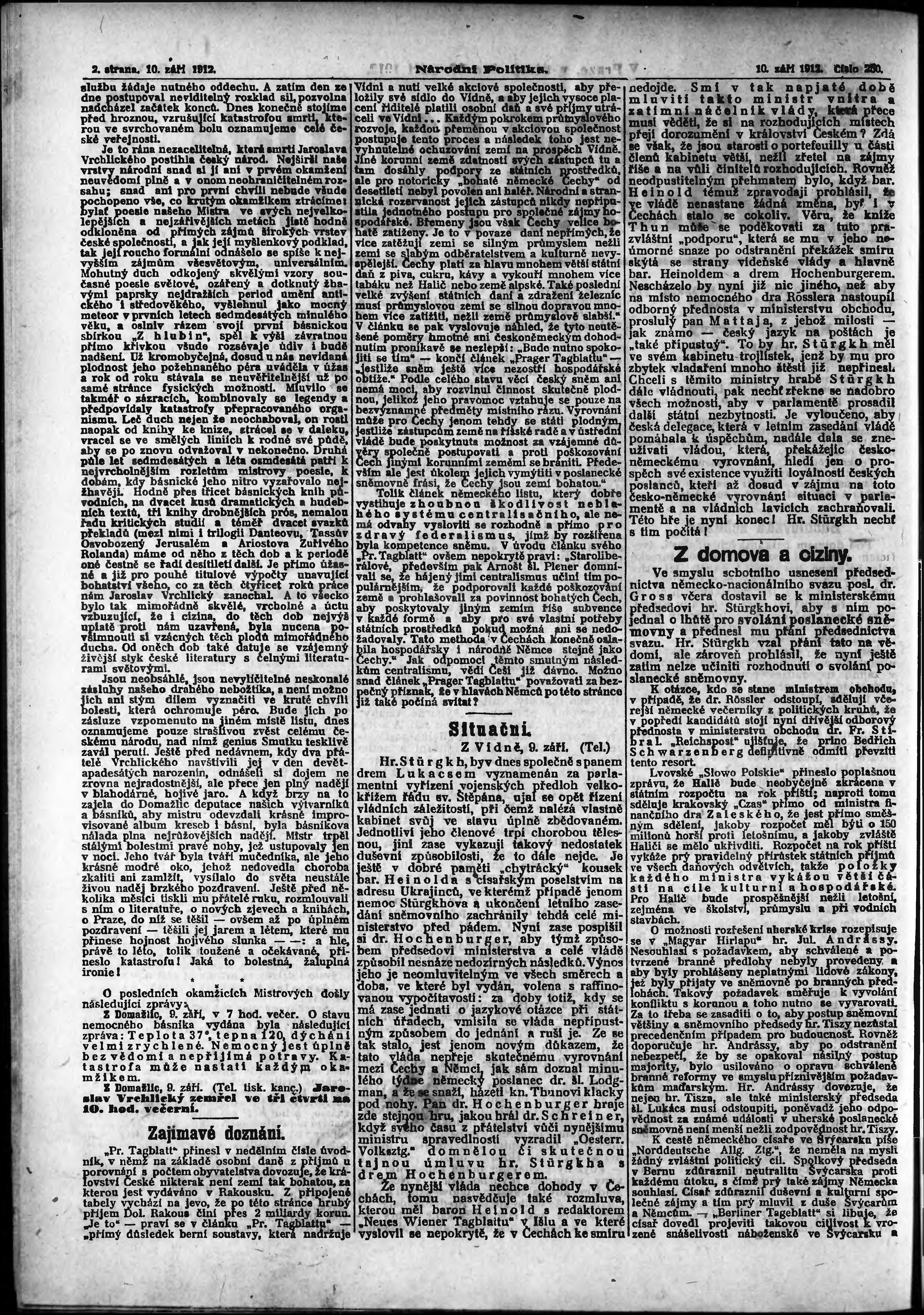 * Datum vydání výtisku: 10.9.1912 Číslo výtisku: 250 Poznámky k výtisku: ranní vydání;