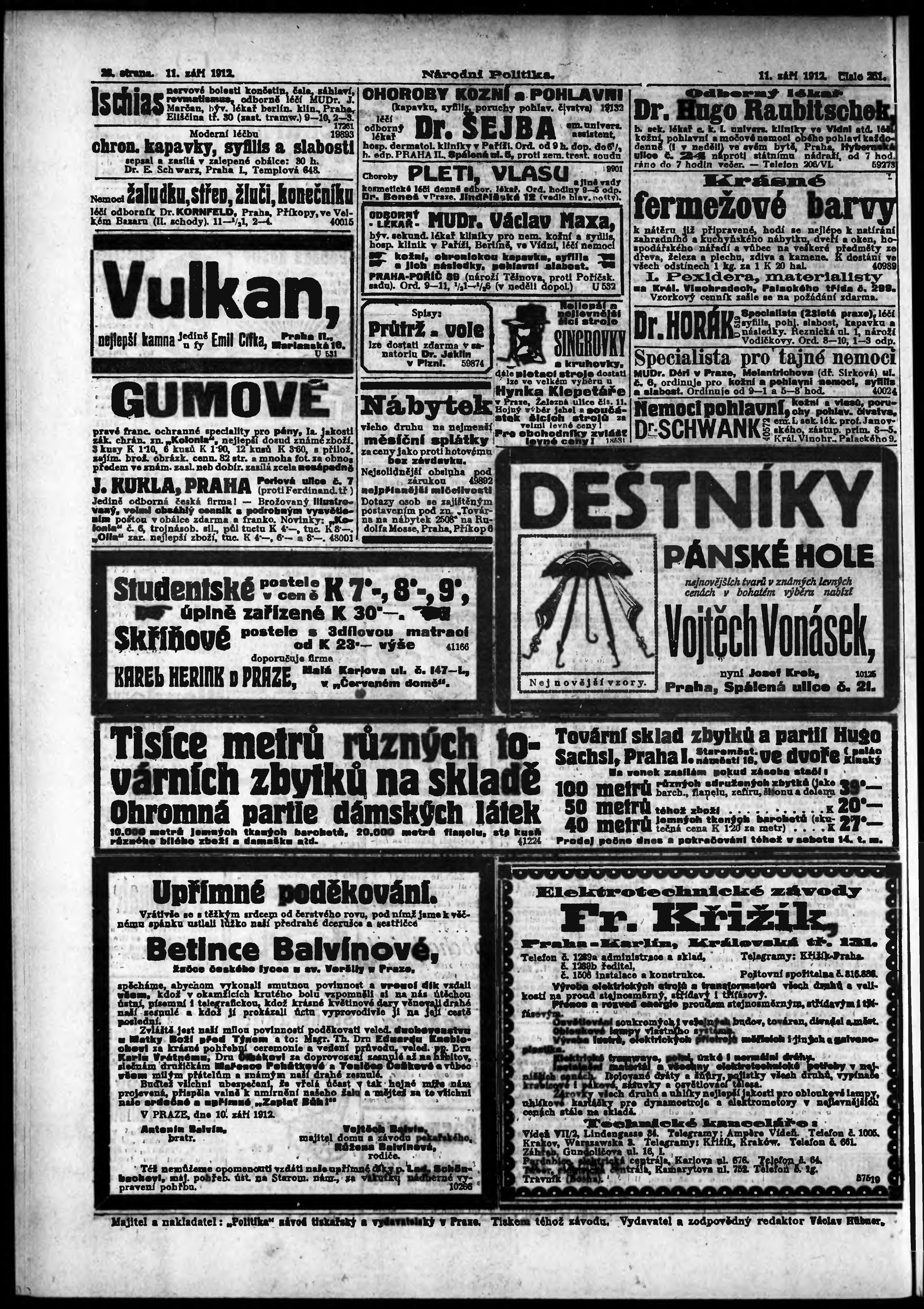 * Datum vydání výtisku: 11.9.1912 Číslo výtisku: 251 Poznámky k výtisku: ranní vydání;