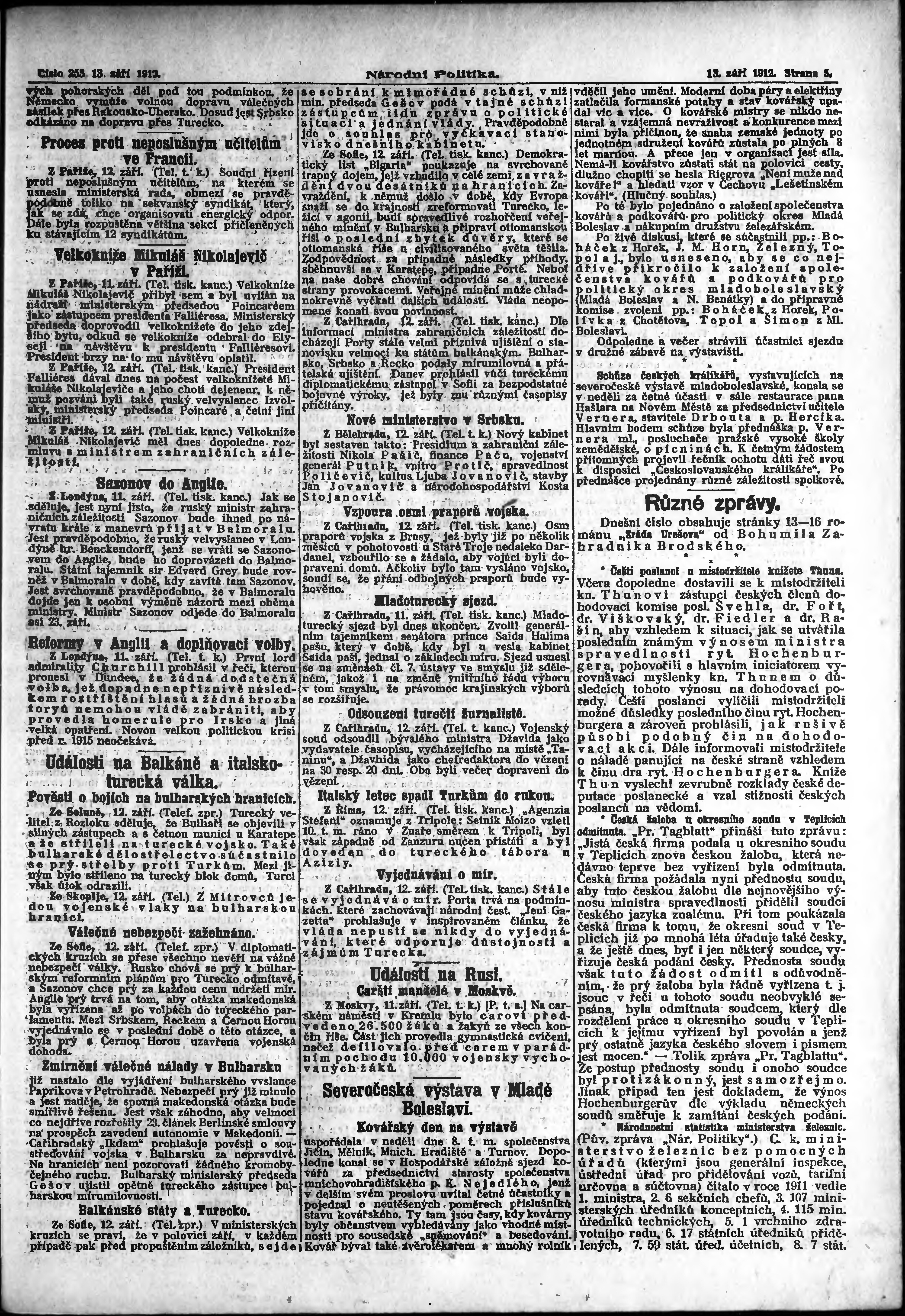 * Datum vydání výtisku: 13.9.1912 Číslo výtisku: 253 Poznámky k výtisku: ranní vydání;