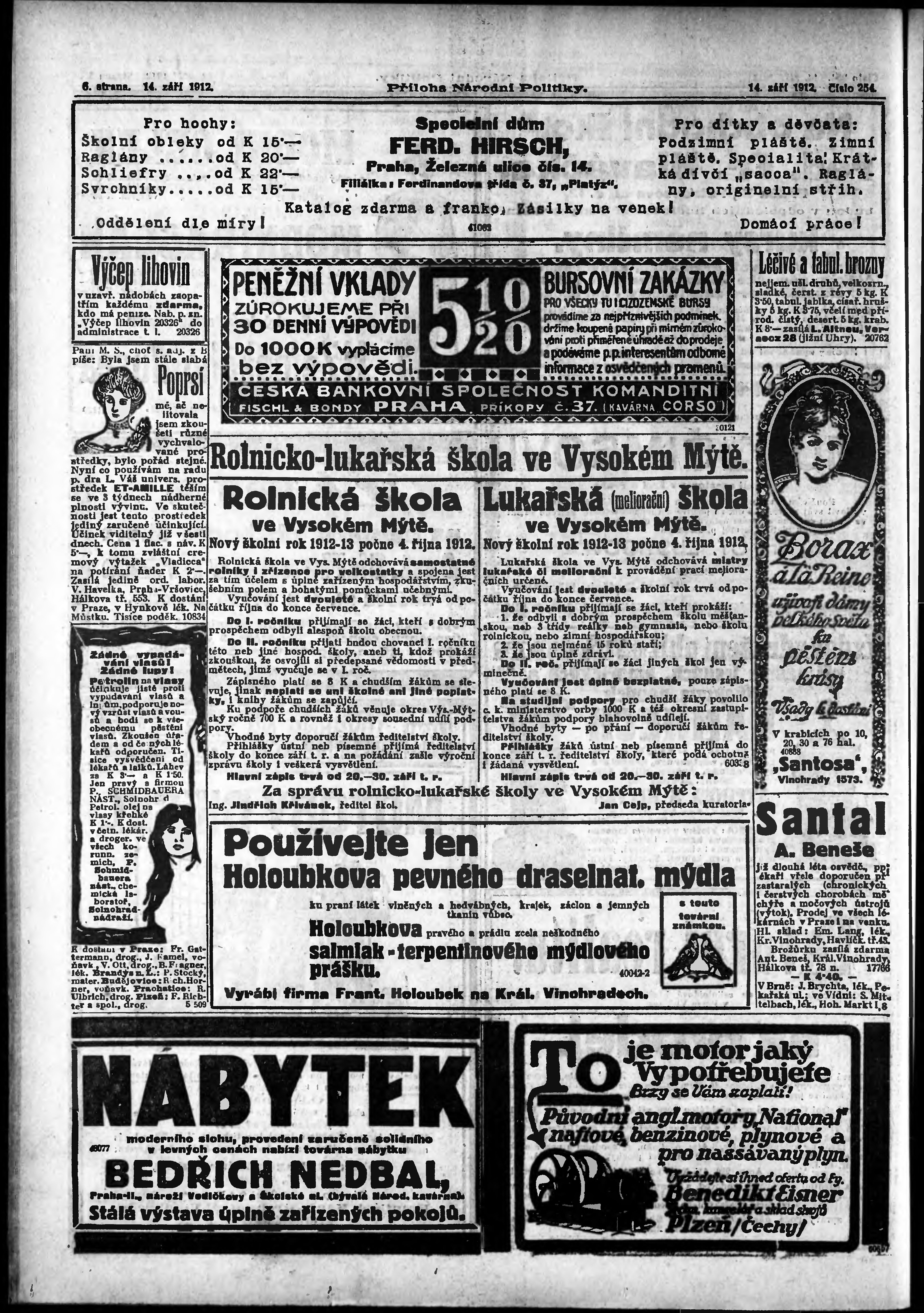 * Datum vydání výtisku: 14.9.1912 Číslo výtisku: 254 Typ výtisku: příloha