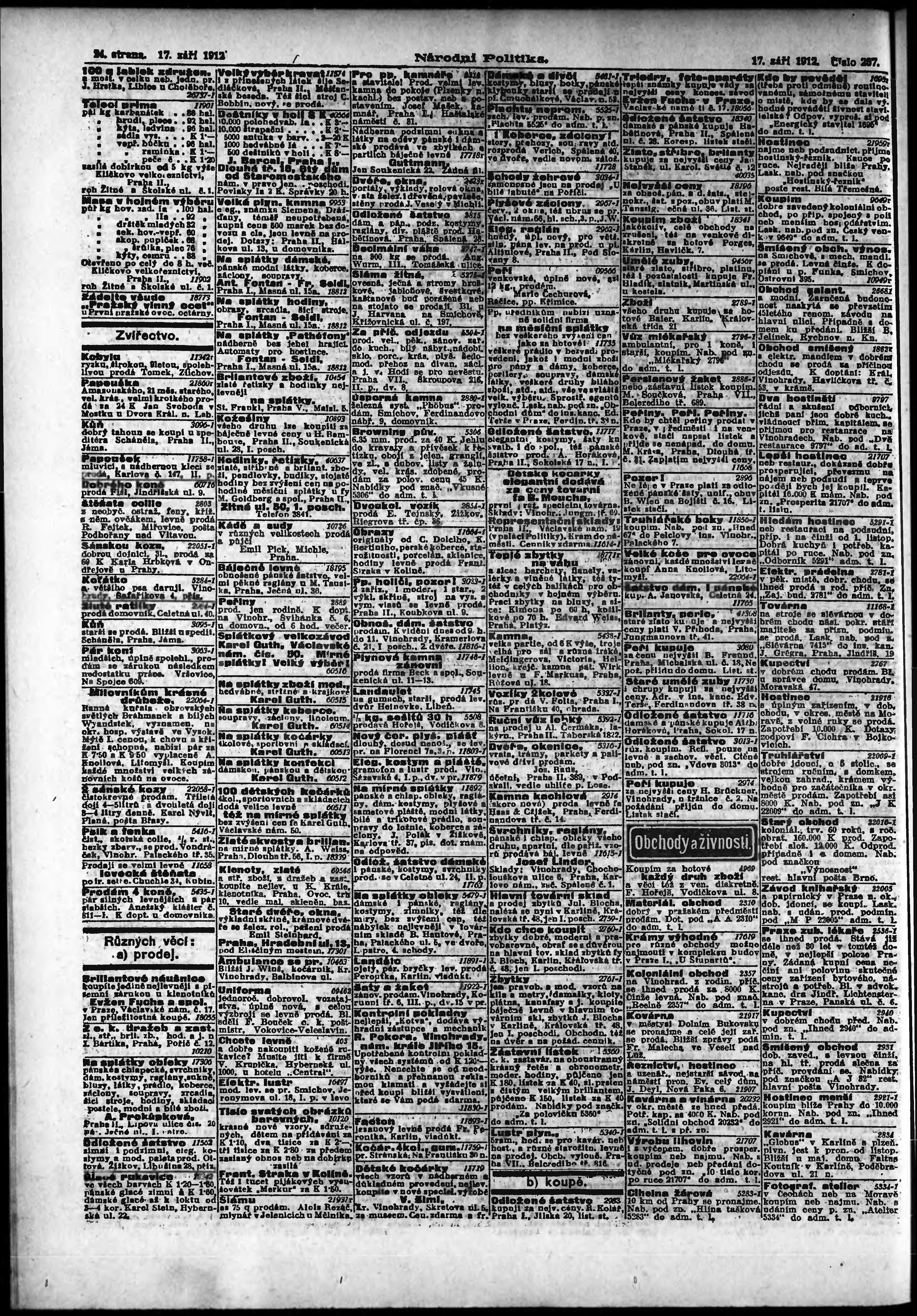 * Datum vydání výtisku: 17.9.1912 Číslo výtisku: 257 Poznámky k výtisku: ranní vydání; s. 15 - 16 není k dispozici;