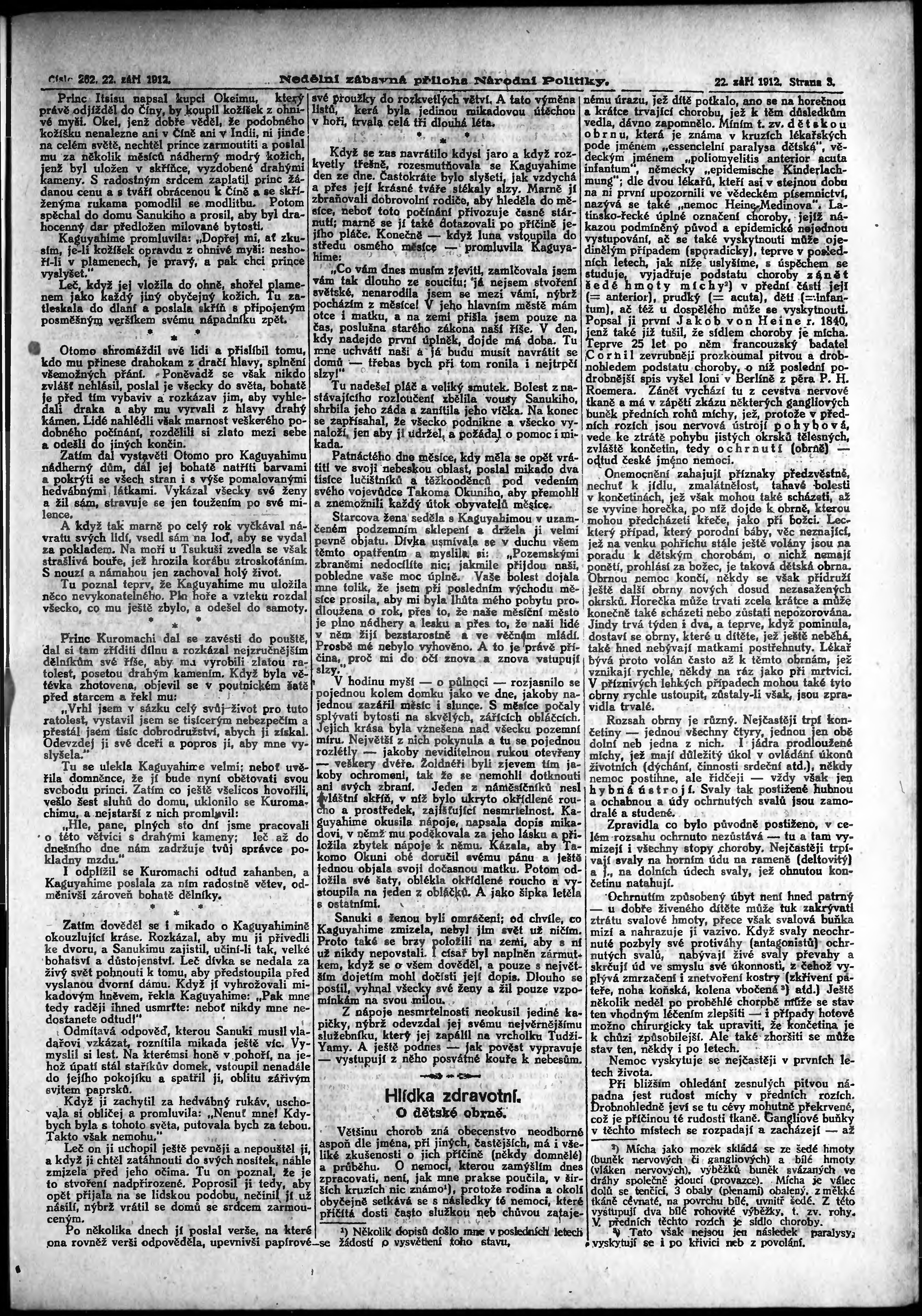 * Datum vydání výtisku: 22.9.1912 Číslo výtisku: 262 Typ výtisku: příloha
