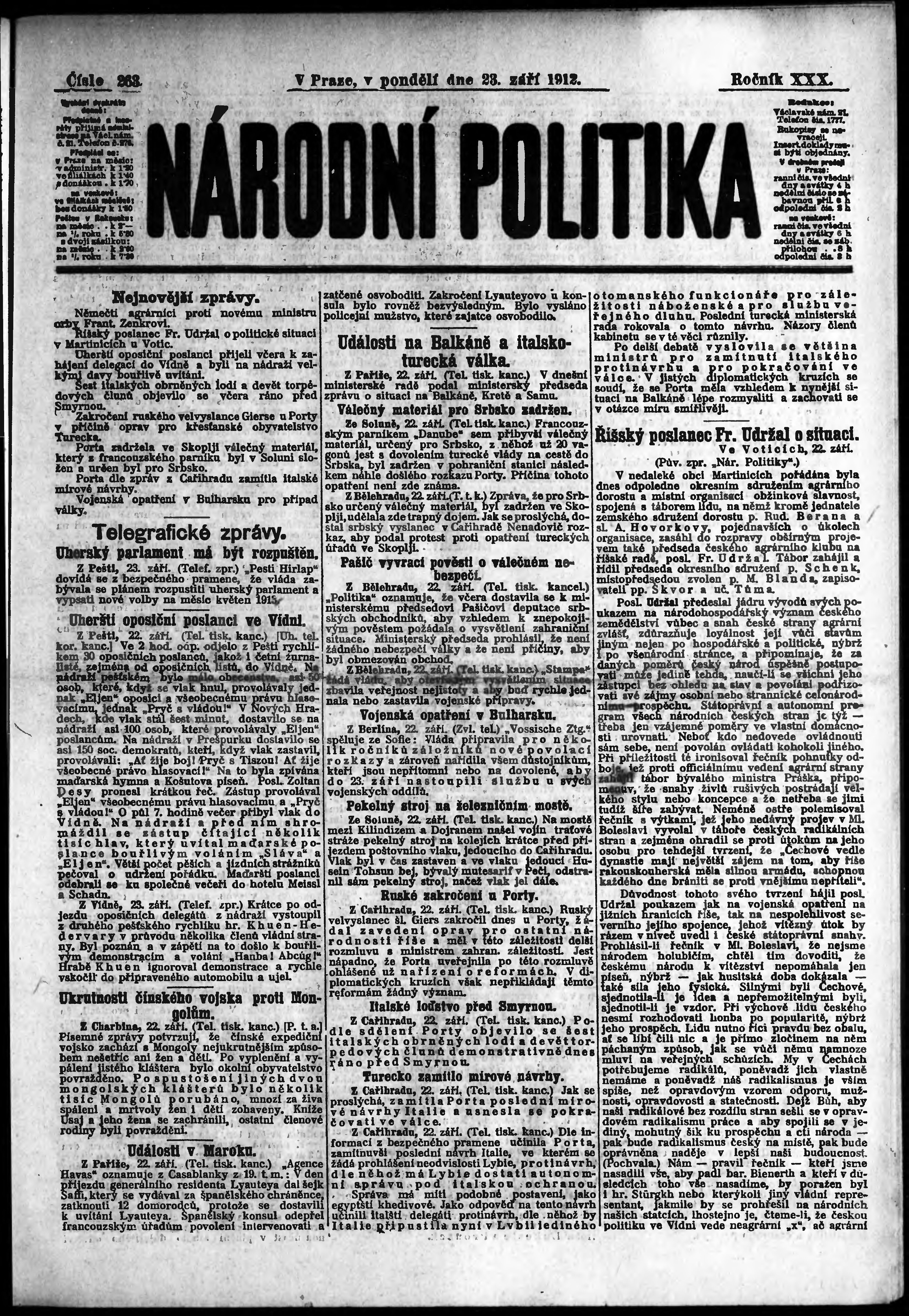* Datum vydání výtisku: 23.9.1912 Číslo výtisku: 263 Poznámky k výtisku: ranní vydání;