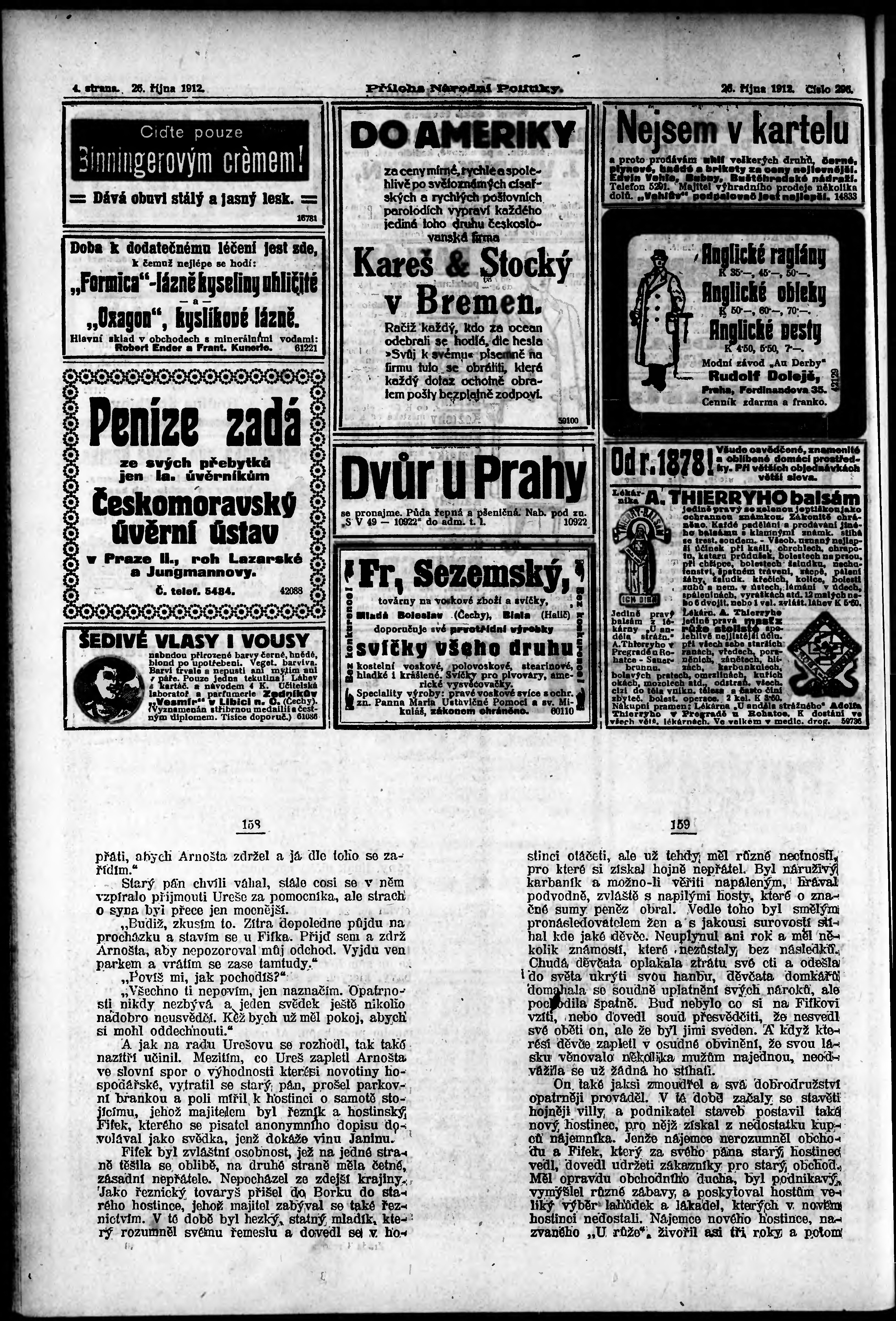 * Datum vydání výtisku: 26.10.1912 Číslo výtisku: 296 Typ výtisku: příloha