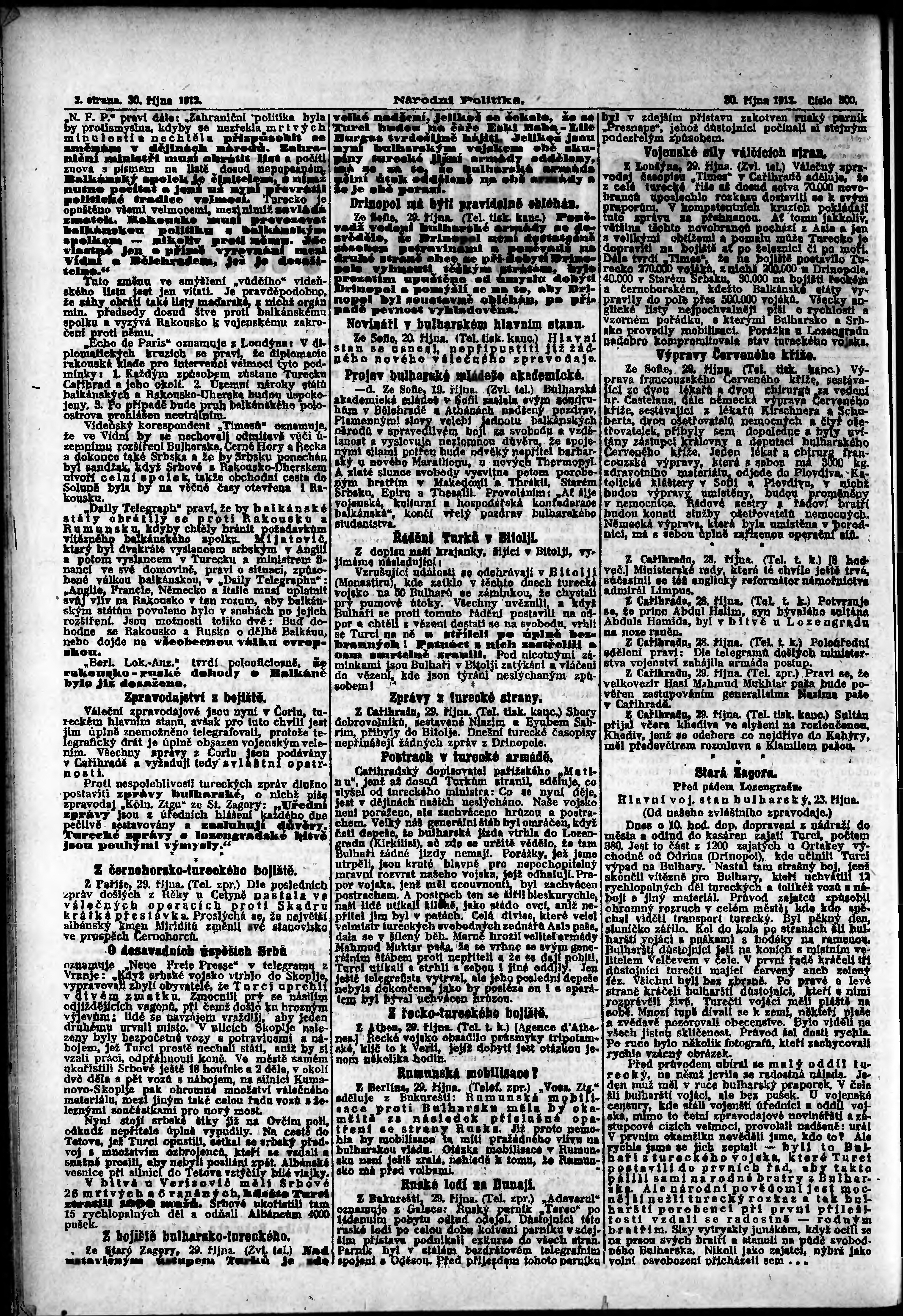* Datum vydání výtisku: 30.10.1912 Číslo výtisku: 300 Poznámky k výtisku: ranní vydání;