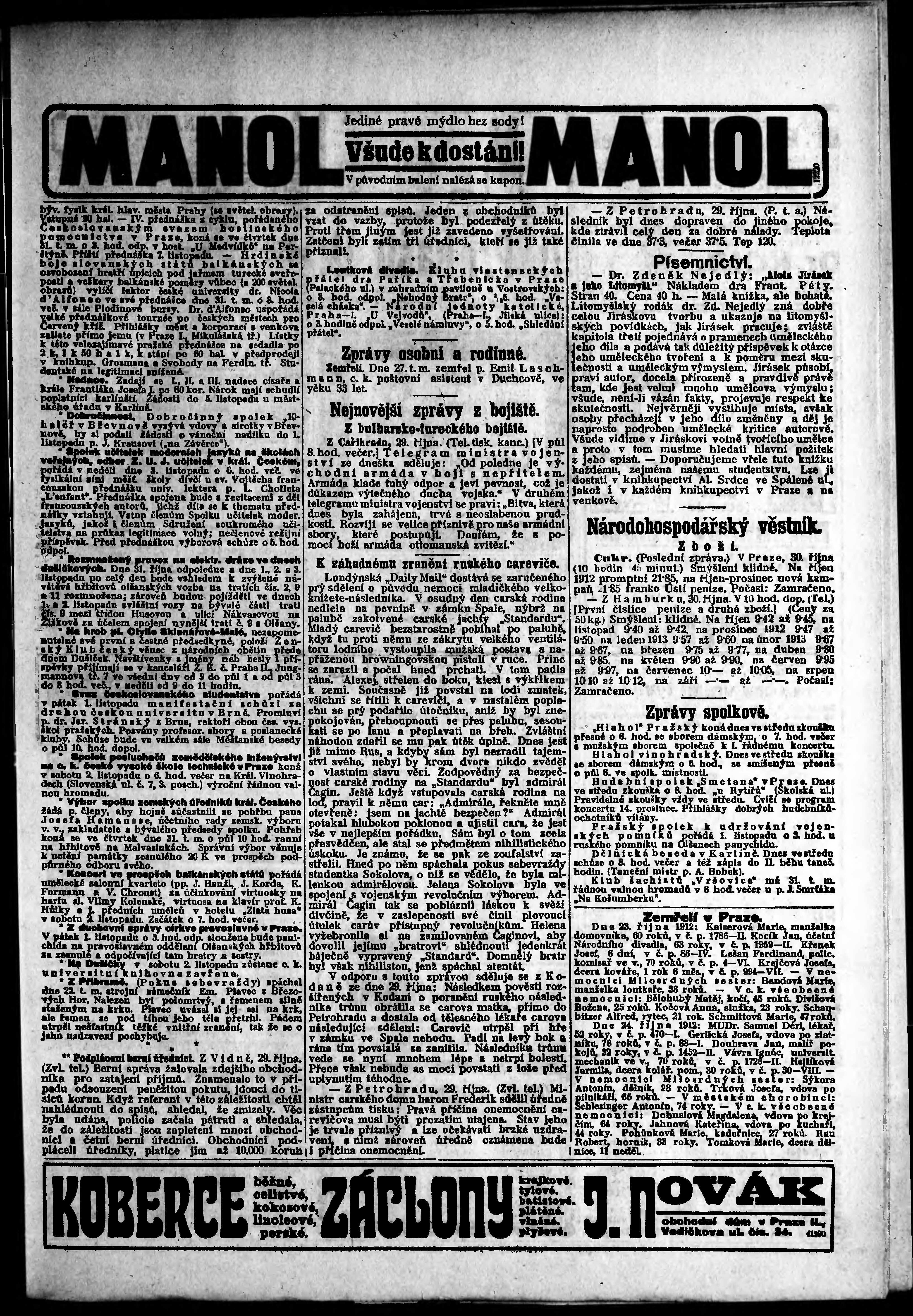 * Datum vydání výtisku: 30.10.1912 Číslo výtisku: 300 Typ výtisku: příloha
