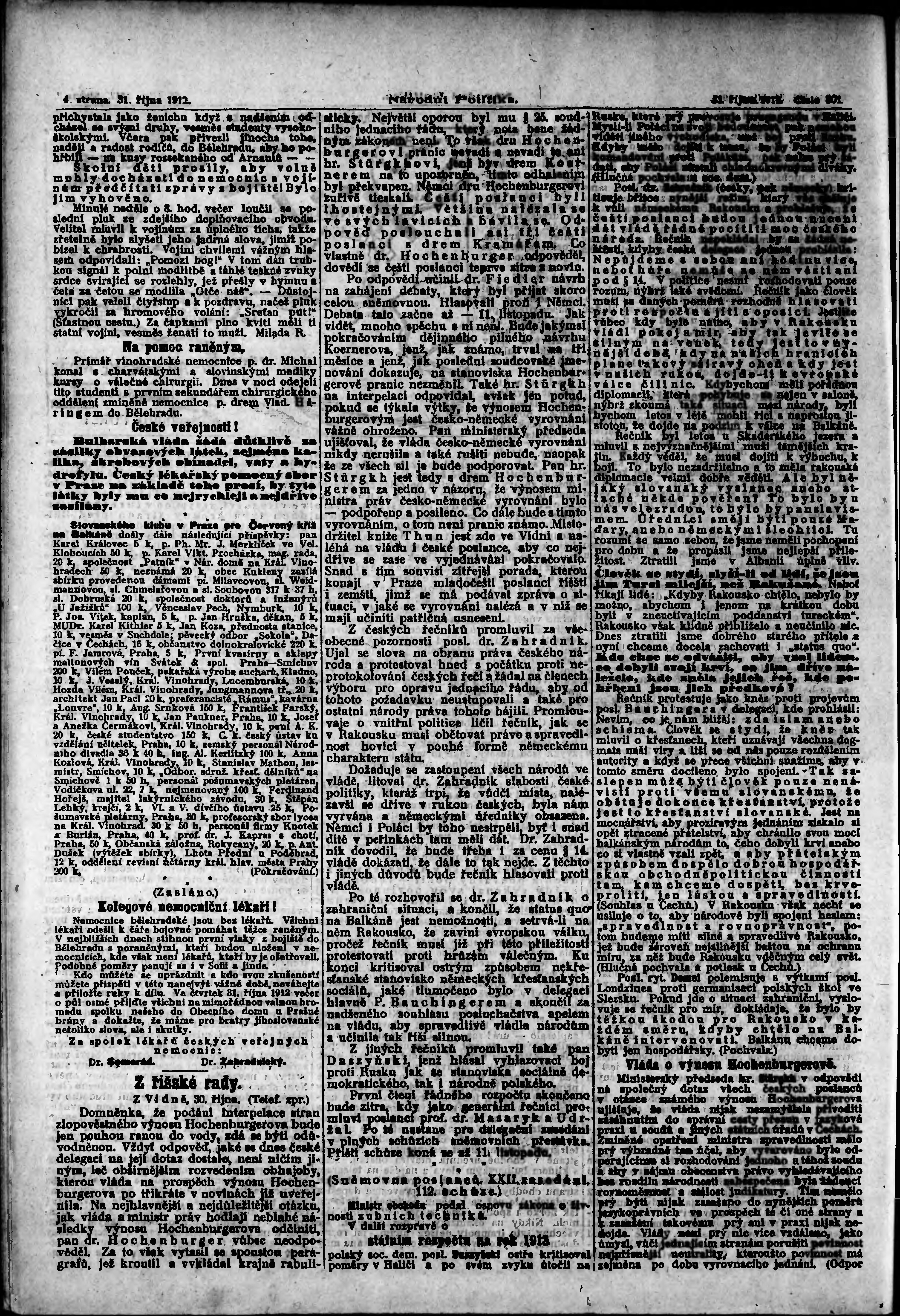 * Datum vydání výtisku: 31.10.1912 Číslo výtisku: 301 Poznámky k výtisku: ranní vydání;