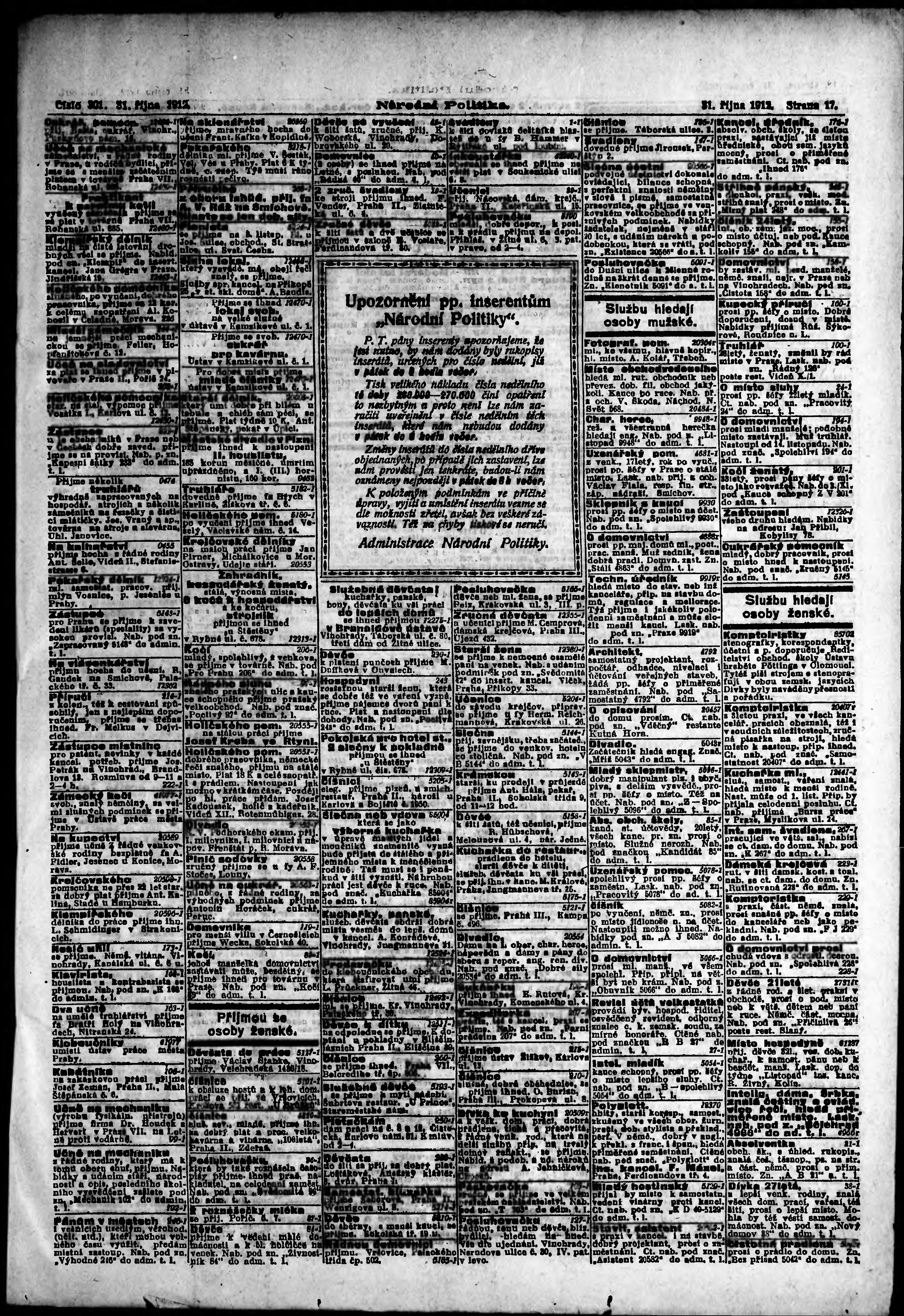 * Datum vydání výtisku: 31.10.1912 Číslo výtisku: 301 Poznámky k výtisku: ranní vydání;