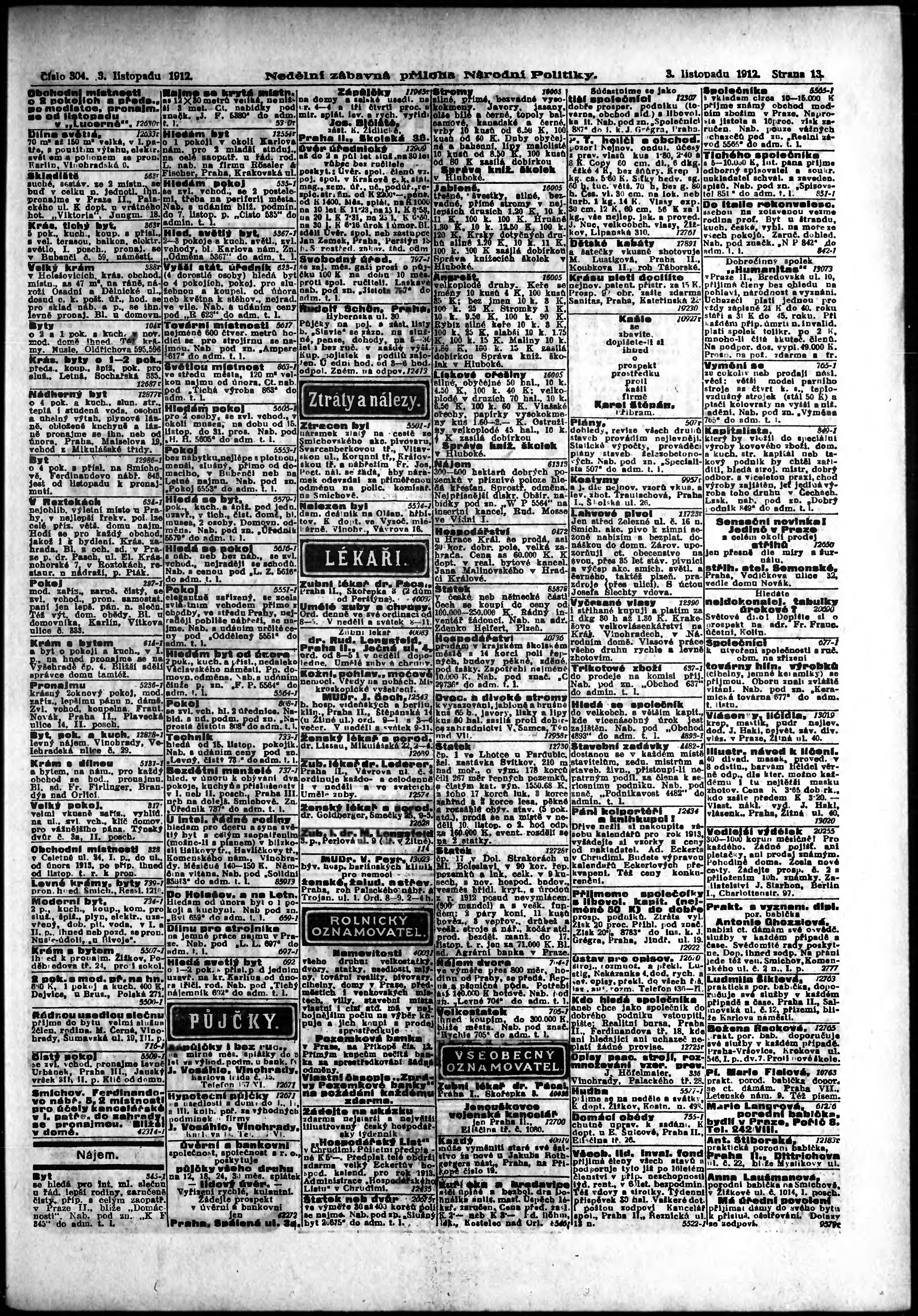 * Datum vydání výtisku: 3.11.1912 Číslo výtisku: 304 Typ výtisku: příloha