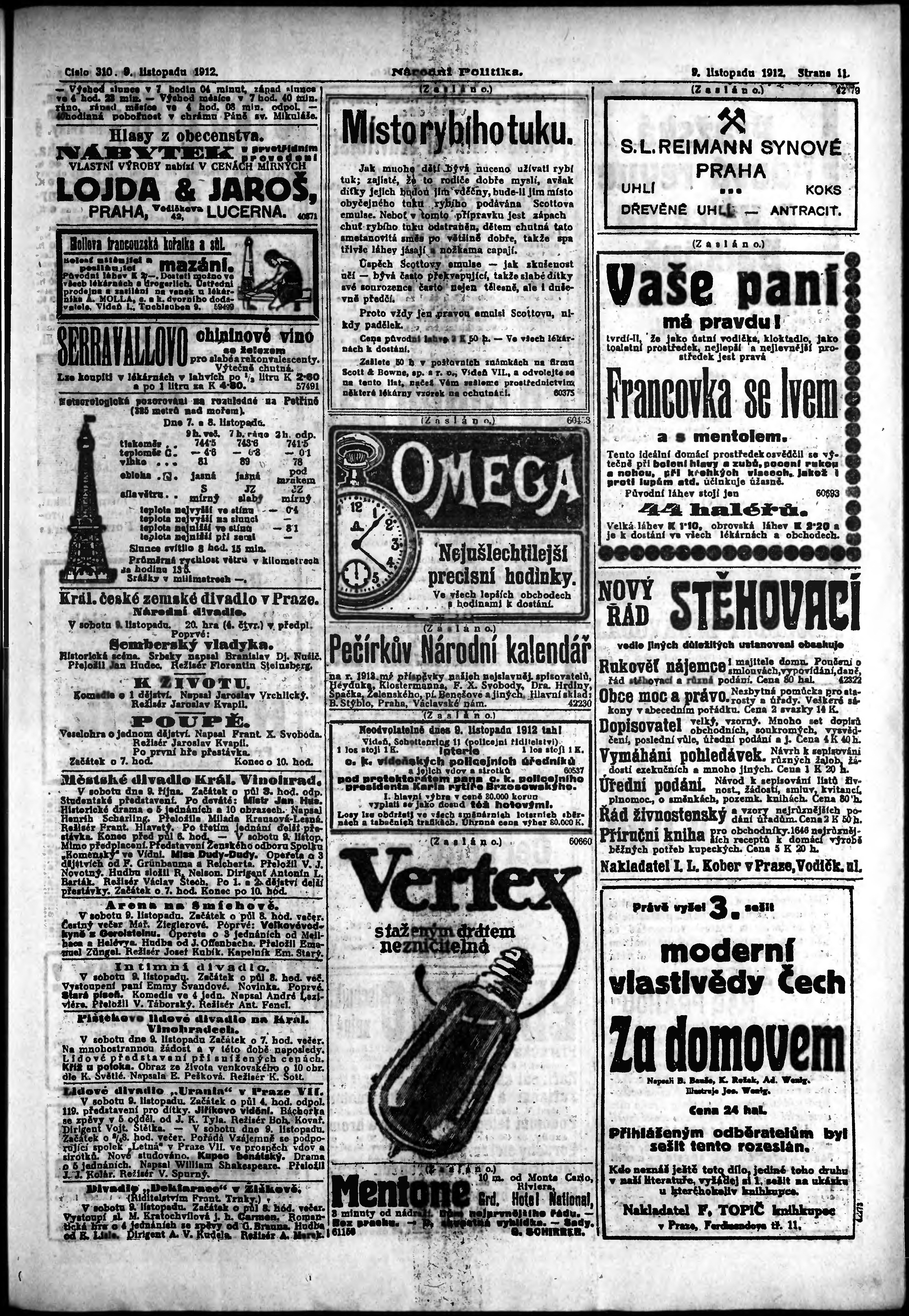 * Datum vydání výtisku: 9.11.1912 Číslo výtisku: 310 Poznámky k výtisku: ranní vydání;