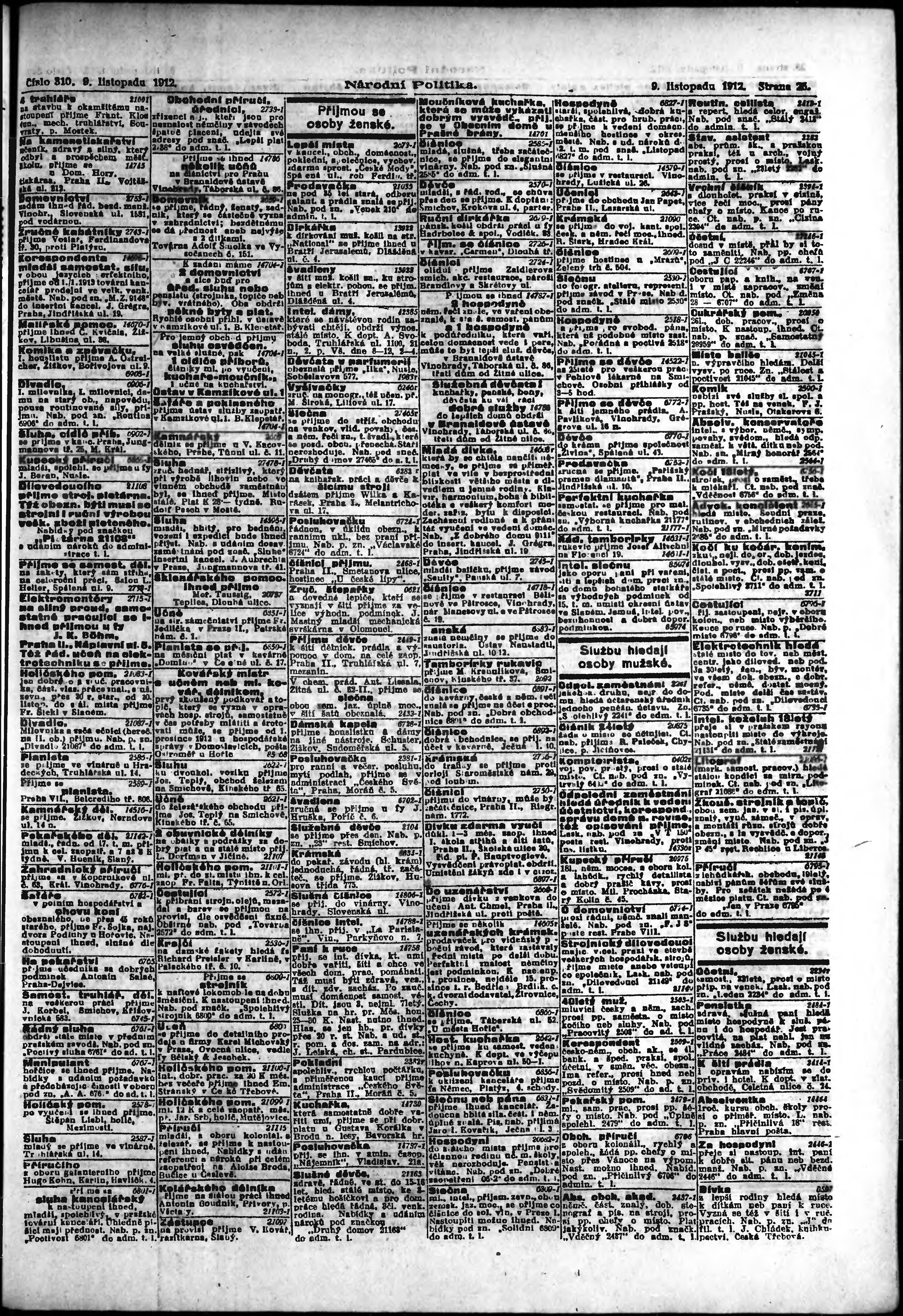 * Datum vydání výtisku: 9.11.1912 Číslo výtisku: 310 Poznámky k výtisku: ranní vydání;