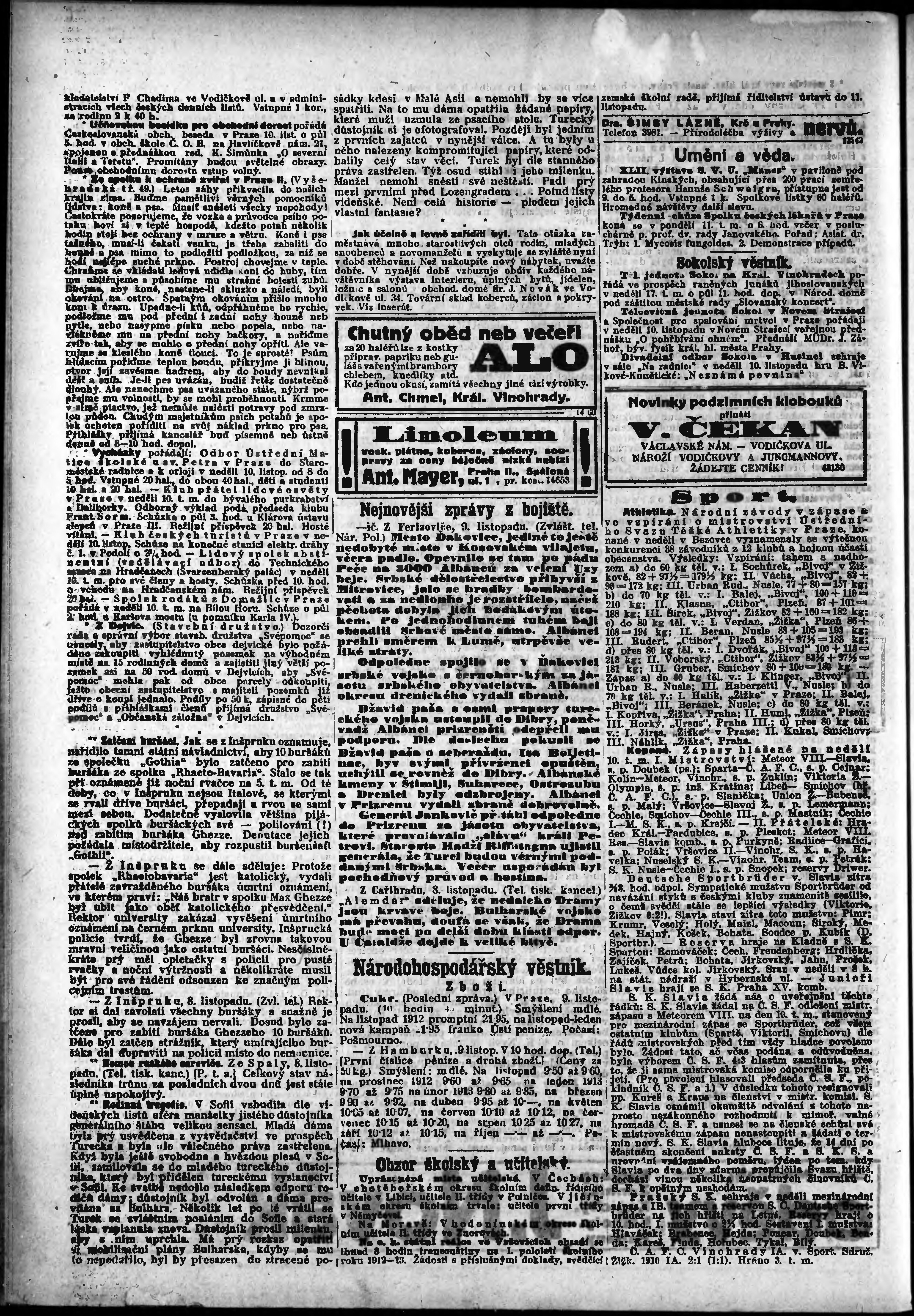 * Datum vydání výtisku: 9.11.1912 Číslo výtisku: 310 Poznámky k výtisku: odpolední vydání;