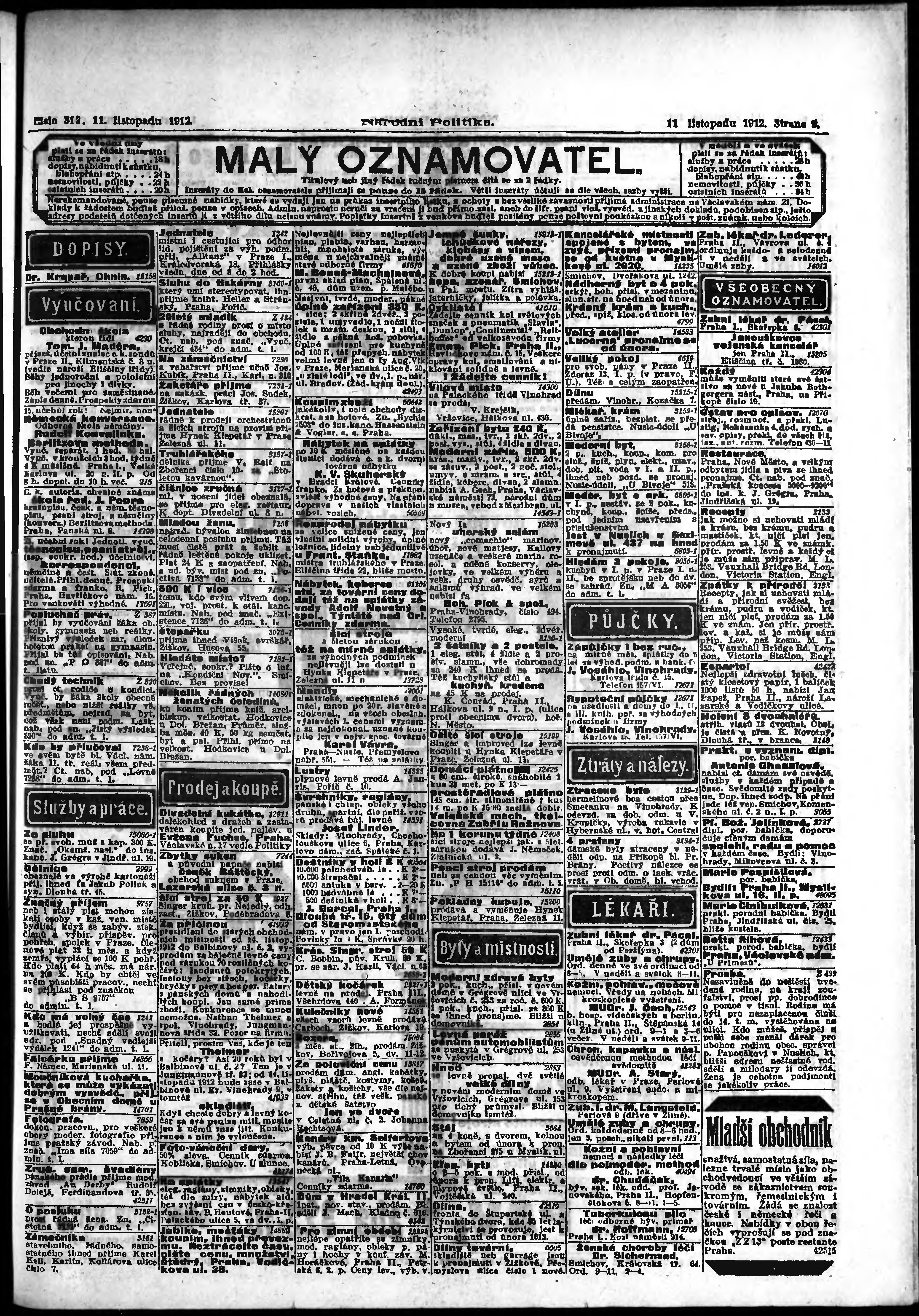 * Datum vydání výtisku: 11.11.1912 Číslo výtisku: 312 Poznámky k výtisku: ranní vydání;
