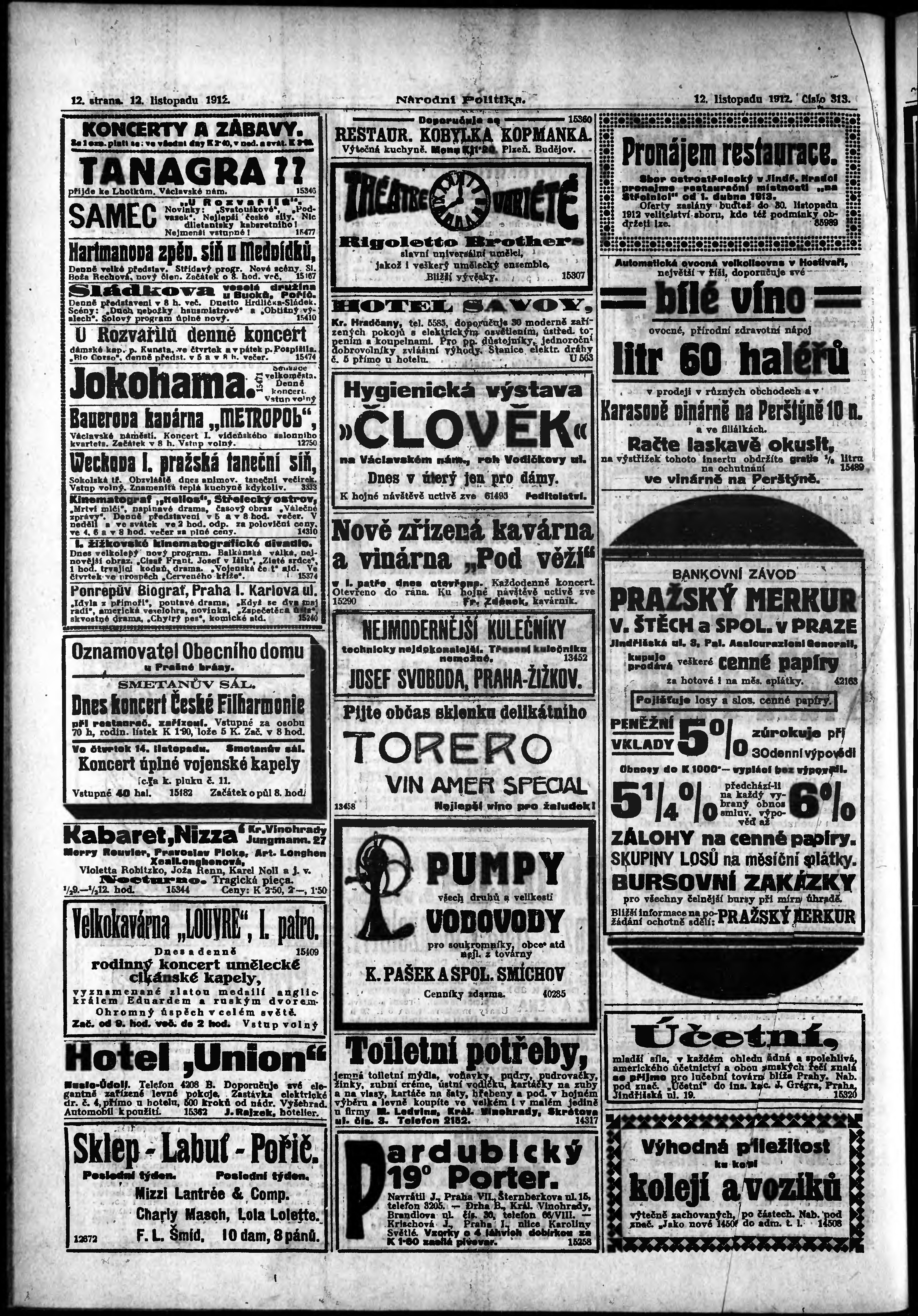 * Datum vydání výtisku: 12.11.1912 Číslo výtisku: 313 Poznámky k výtisku: ranní vydání;